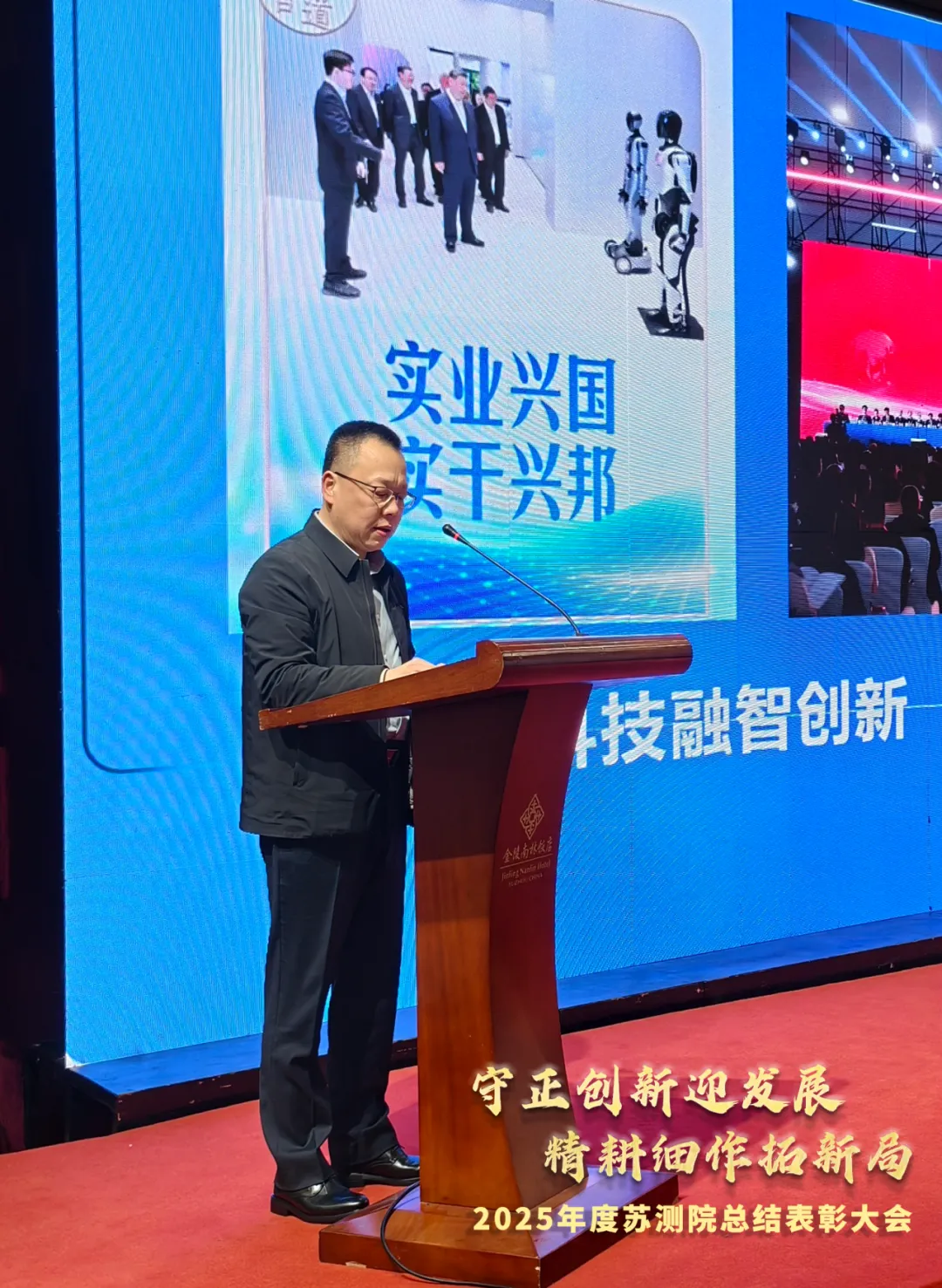 最后,王建辉董事长发表年度致辞,他对公司2025年的工作成绩给予充分肯定,向全体员工的辛勤付出致以诚挚感谢,并寄语大家立足新起点、抢抓新机遇,2026年锐意进取、实干笃行,共绘苏测院发展新蓝图。