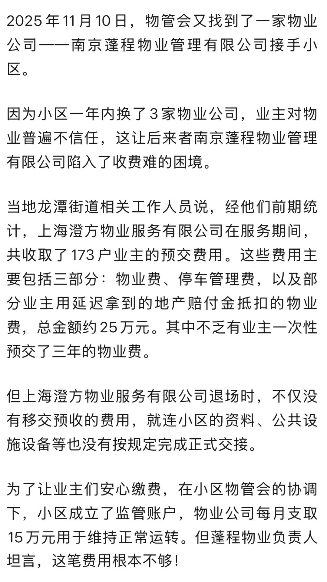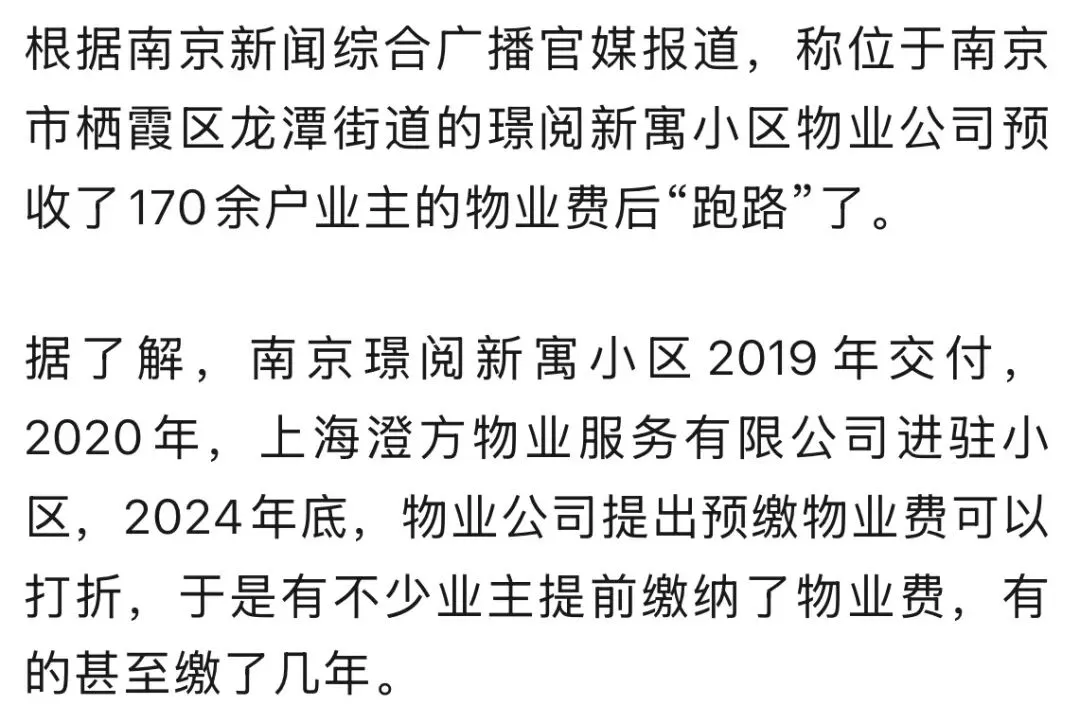 >预收物业费后,南京这一小区的物业公司竟然卷款跑路了!