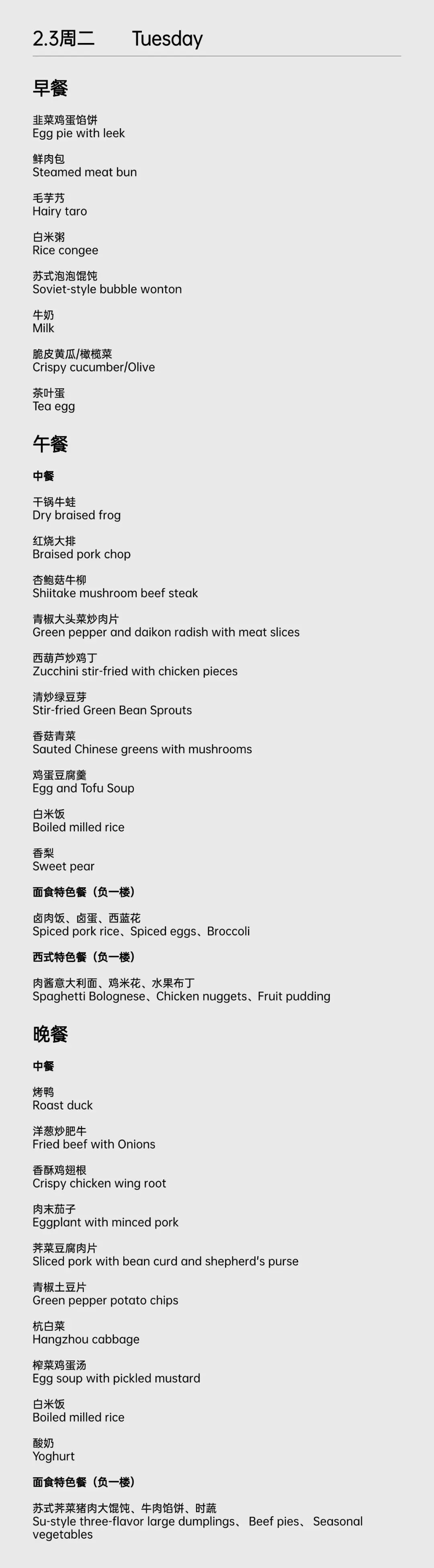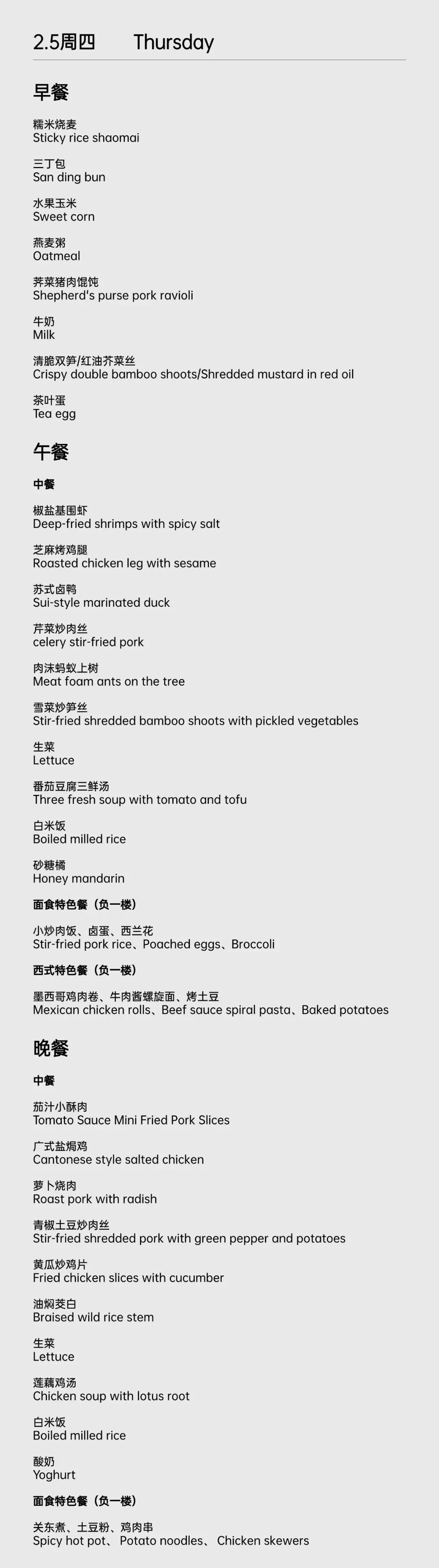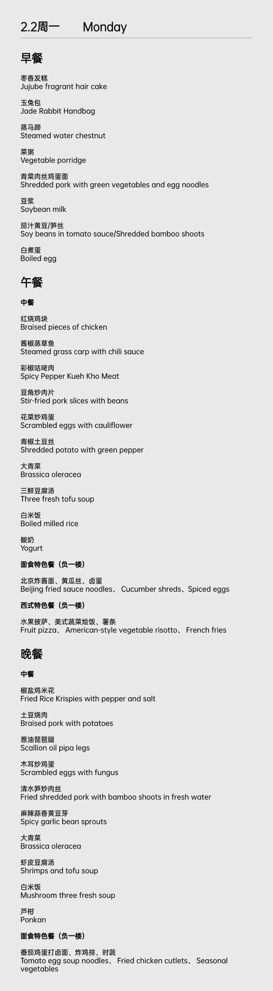 美高校园 | 苏州美高学校本周菜单(2.2~2.6)请查收!