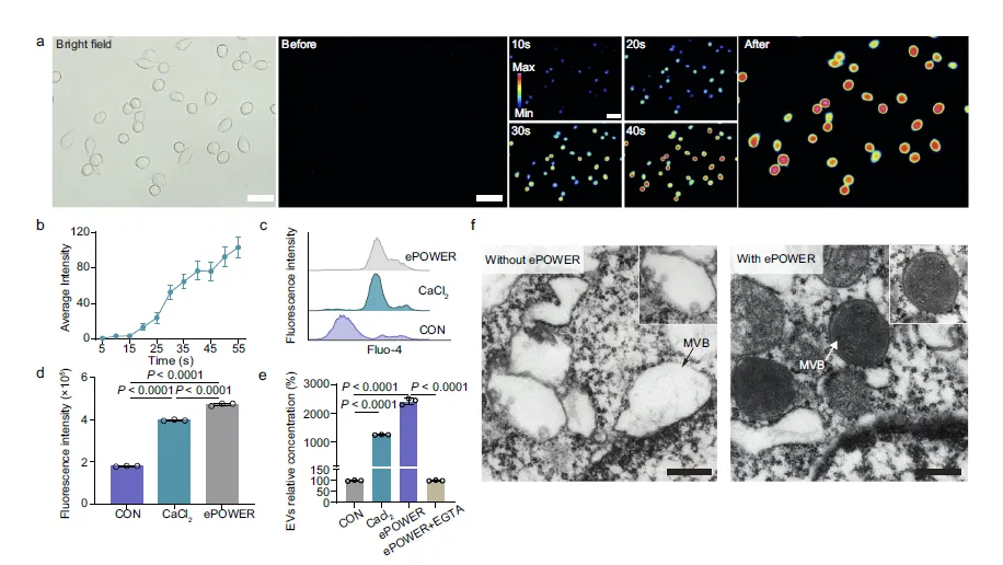 Figure 4:胞内钙内流介导 ePOWER 调控 EV 生物合成的机制