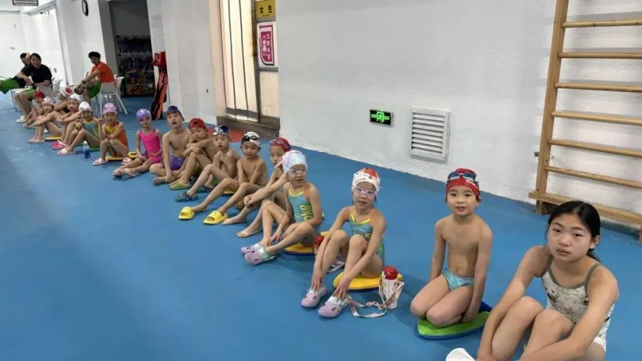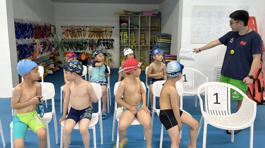清晨8时,参赛学员们在家长的陪同下陆续抵达场馆。工作人员贴心为每位学员分发能量餐包,并引导他们有序进入更衣室更换泳衣。候场区内,孩子们或摩拳擦掌、调整泳镜,或与同伴互相打气,紧张与期待的情绪交织在空气中。