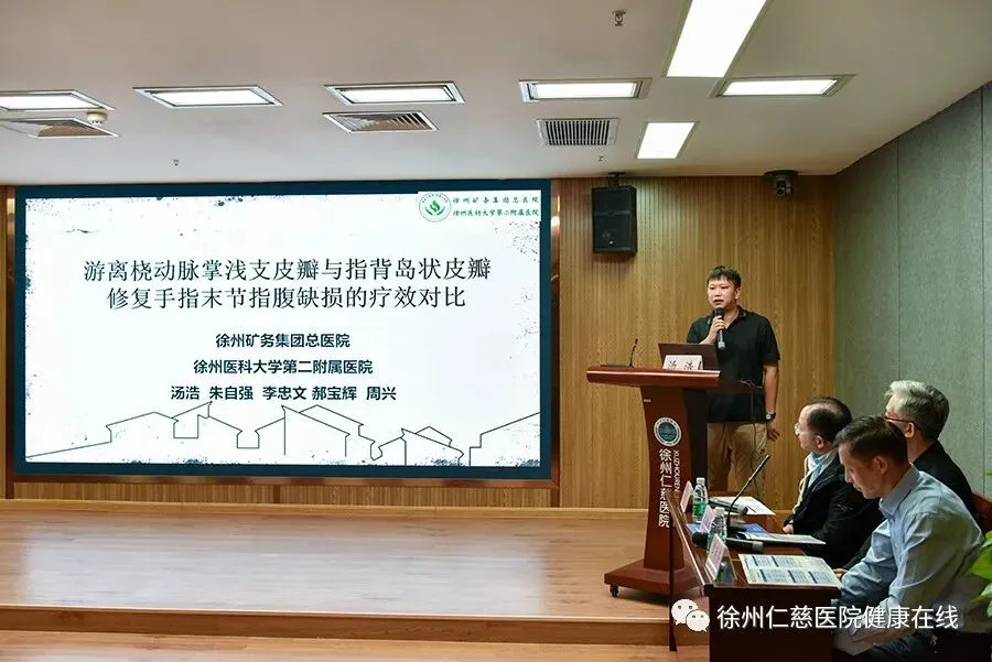 徐州矿务集团总医院汤浩作《游离桡动脉掌浅支皮瓣与指背岛状皮瓣修复手指末节指腹缺损的疗效对比》专题演讲。