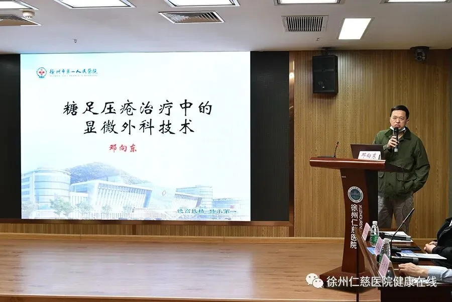 徐州市第一人民医院邓向东作《糖足压疮治疗中的显微技术》专题演讲。