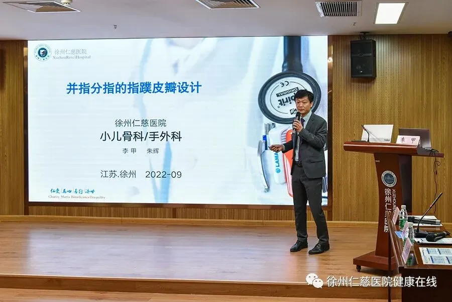 徐州仁慈医院李甲作《并指分指的指蹼皮瓣临床进展及应用经验》专题演讲。