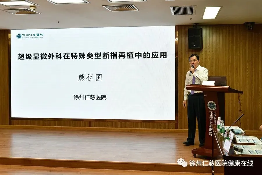 徐州仁慈医院熊祖国作《超级显微外科在特殊类型断指再植中的应用》专题演讲。