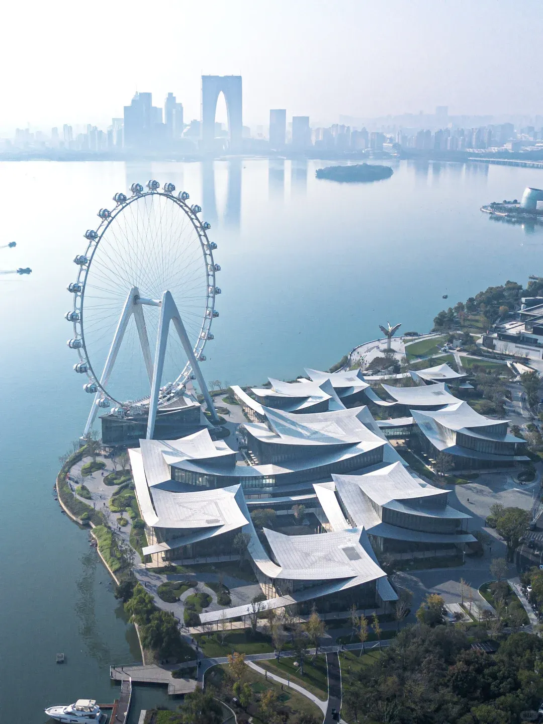 苏州当代美术馆之所以能火,主要是因为它好看、好拍。它就像现代园林一样,配上苏州之眼的摩天轮,一看就适合成为网红地标。