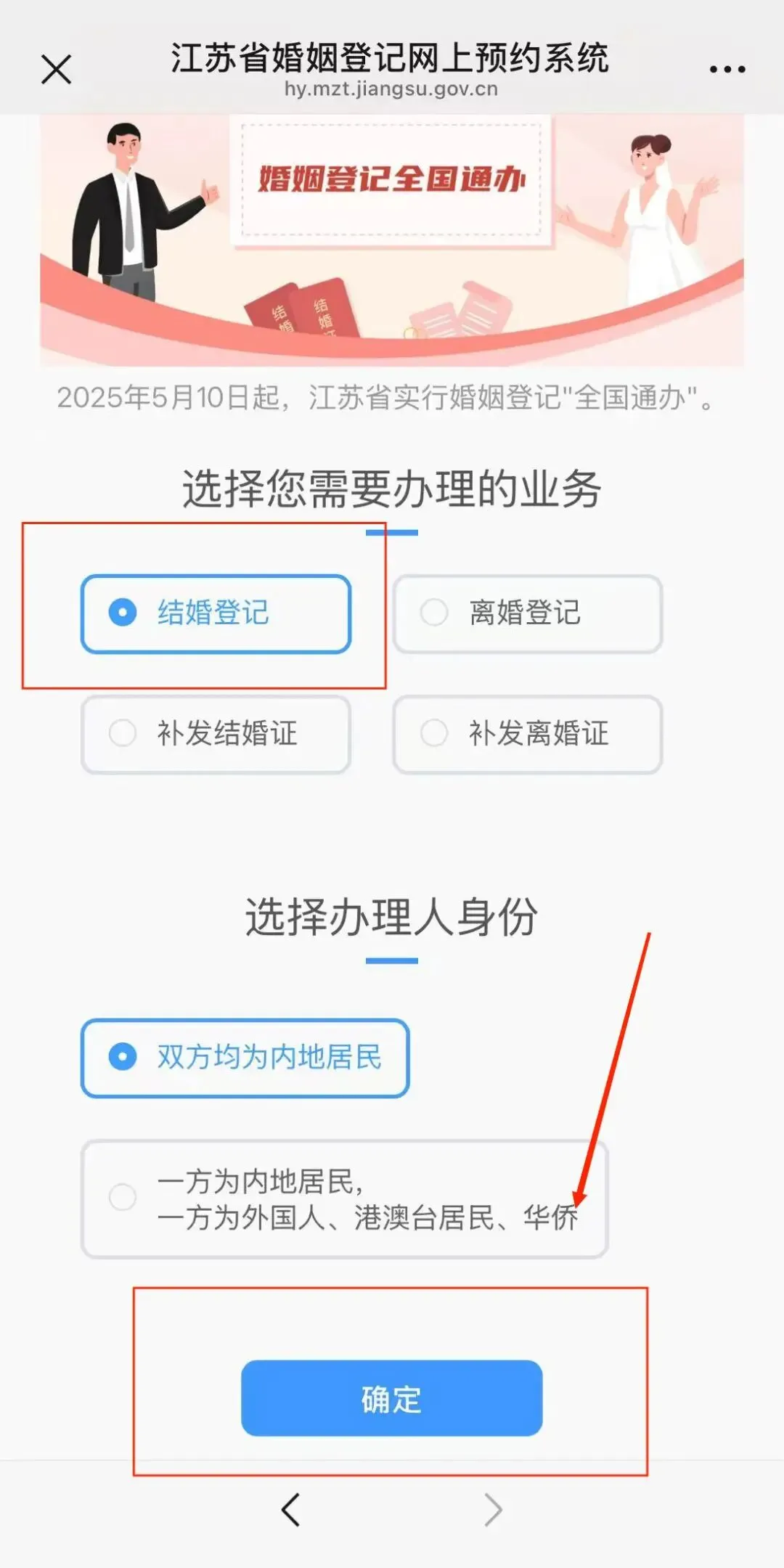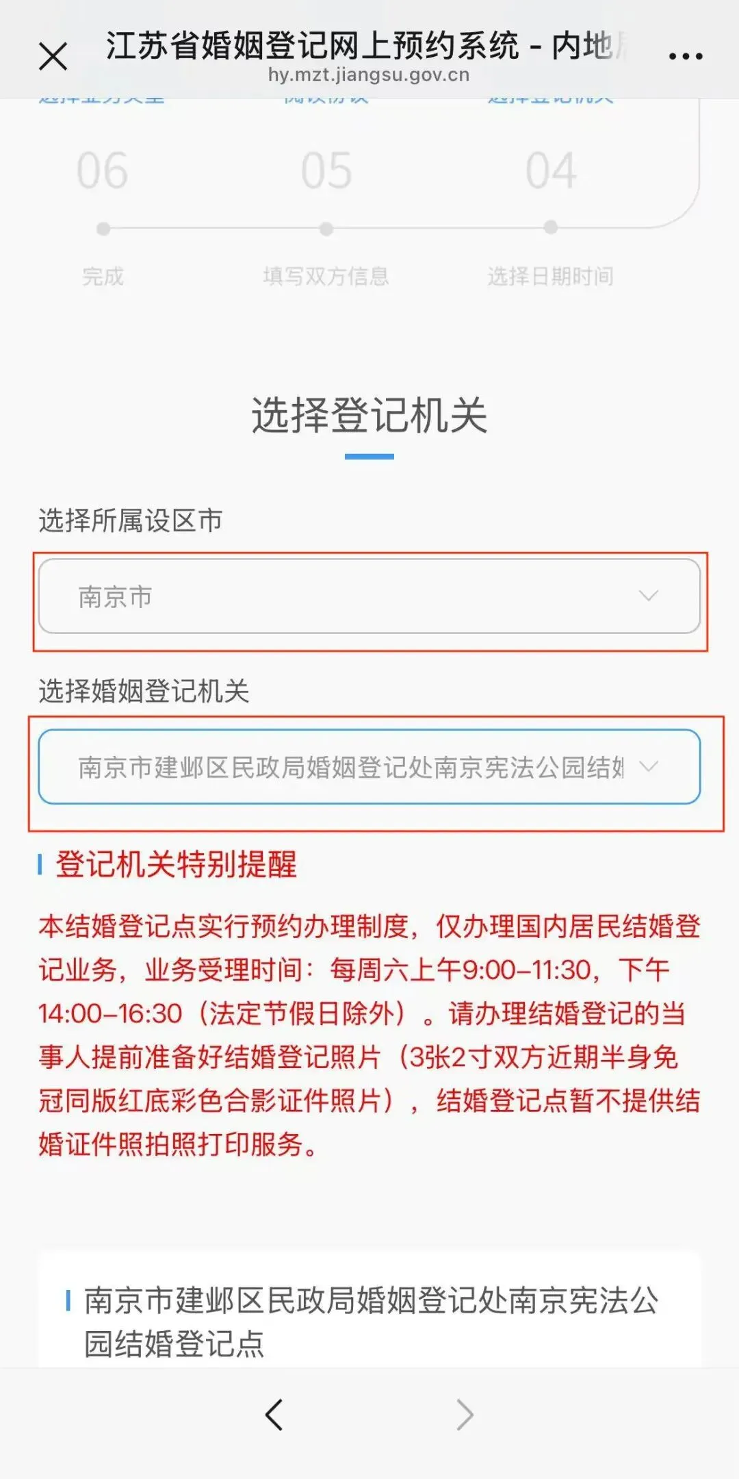 关注南京本地宝,点击预约入口后,点击预约界面,选择【预约婚姻登记-马上登记】-选择办理业务-办理人身份-选择南京市-想去的婚姻登记处即可;