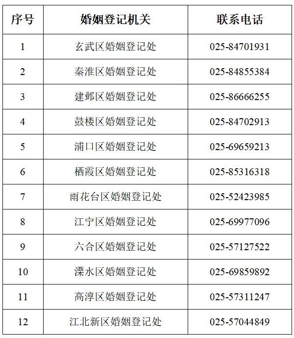 南京市各婚姻登记机关2026年节假日放假调休和加班服务日期具体安排如下: