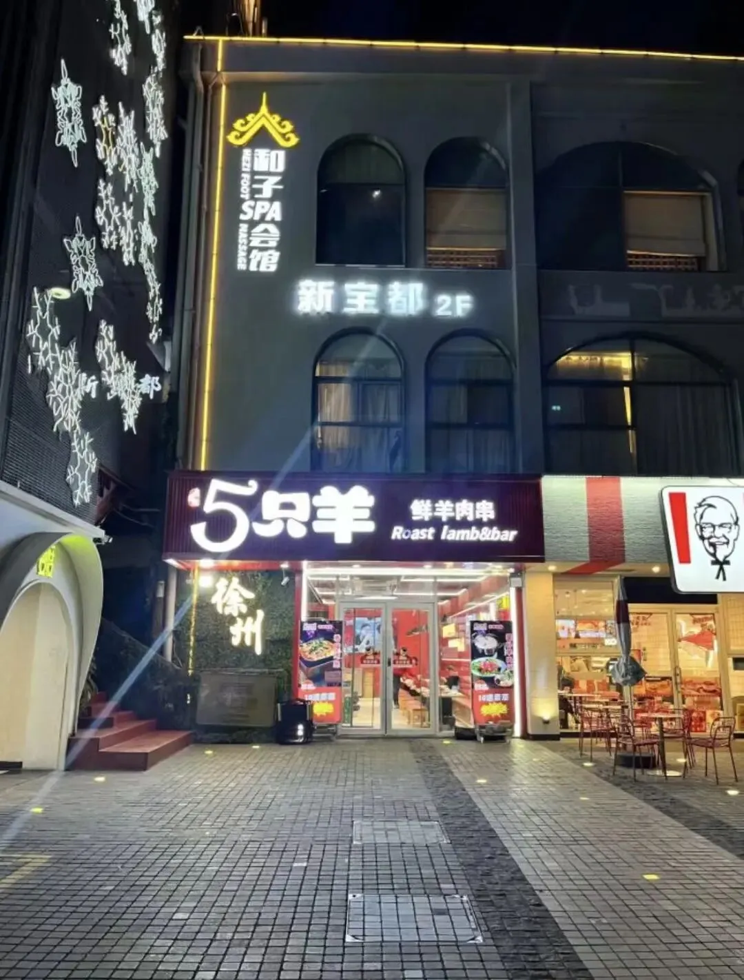 刚转过拐角,炭火的焦香就混着孜然粒的香气撞过来,抬头便看见 “5只羊” 的灯牌在夜色里亮着暖黄的光。