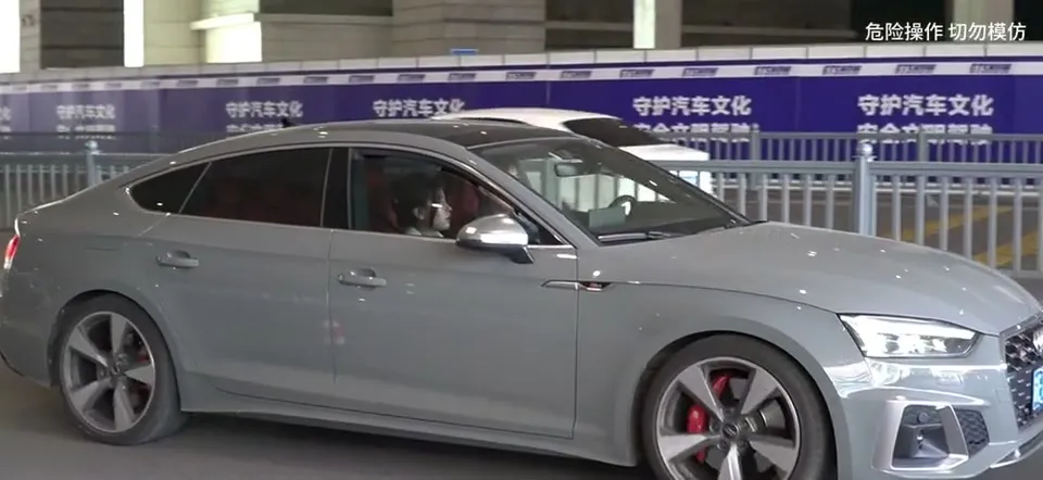 旁边停着一台灰色奥迪A5,线条流畅,改装得也很到位。