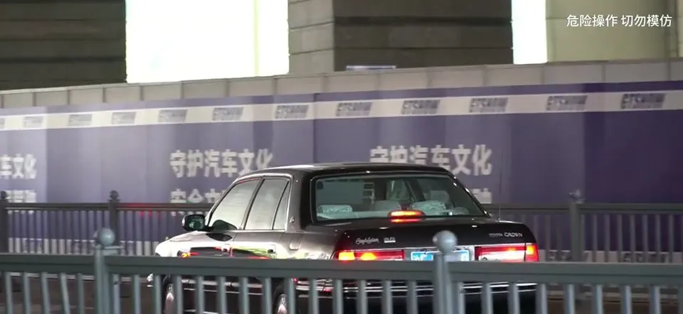不远处还有台黑色丰田皇冠,JDM文化的代表选手。
