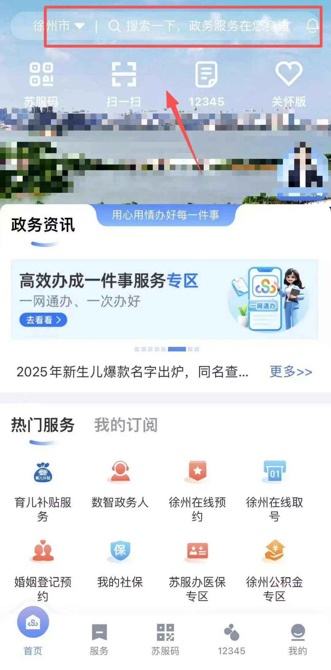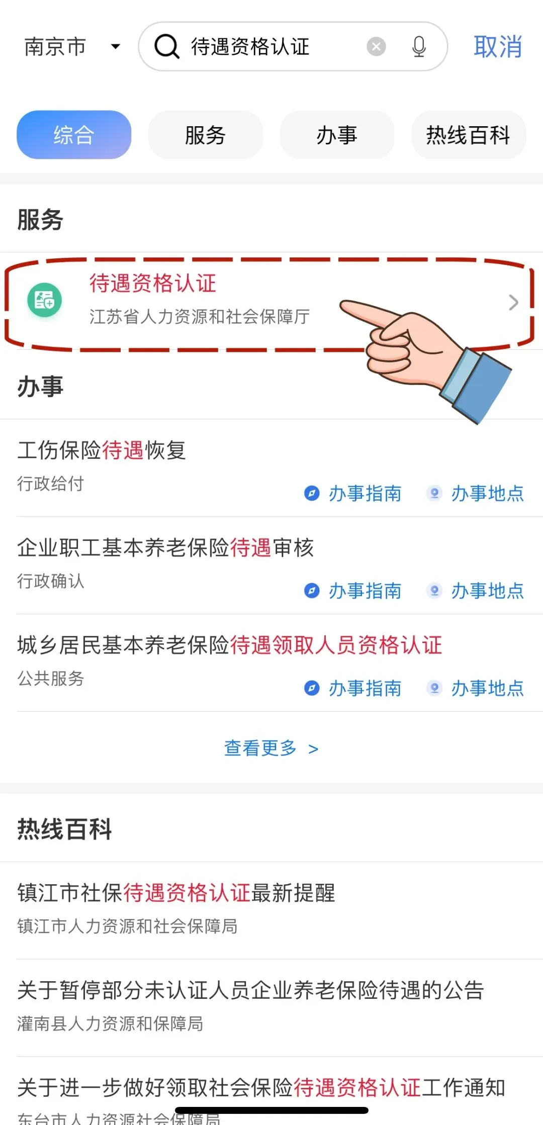 ①打开苏服办(APP、支付宝小程序),在首页搜索“待遇资格认证”,进入服务。