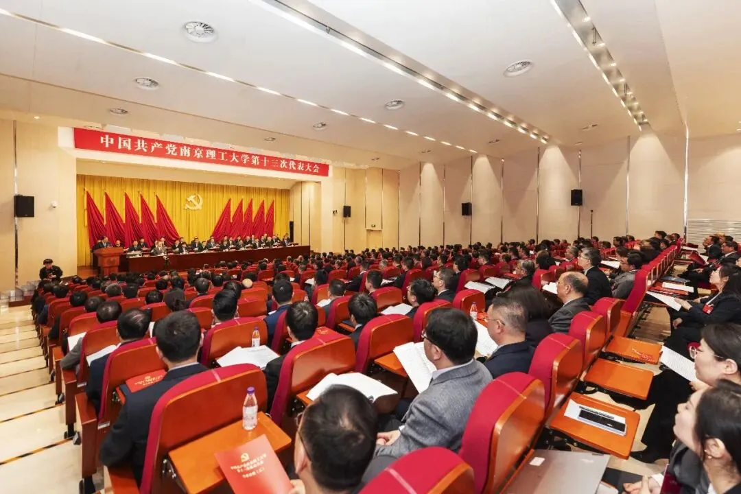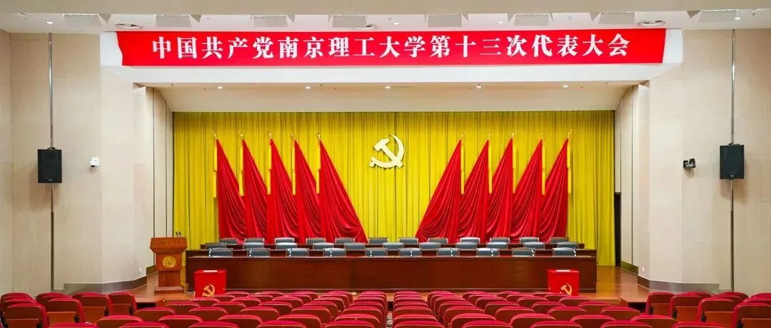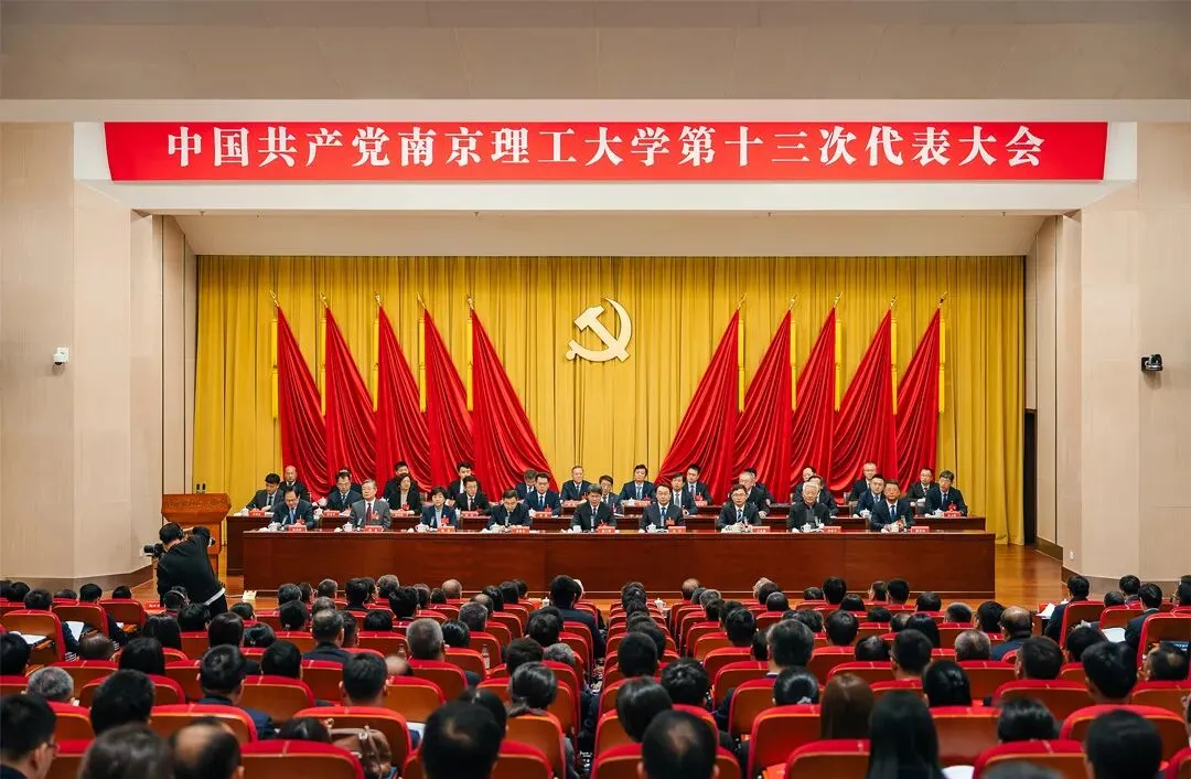 二月的钟山校区腊梅绽放,凌寒生姿。蔓菁报告厅里气氛庄重热烈,主席台上方悬挂着“中国共产党南京理工大学第十三次代表大会”的会标。后幕正中是镰刀和锤头组成的党徽,十面鲜艳的红旗分列两侧,会场高悬“牢记嘱托担使命 团结奋进勇争先 开创特色鲜明世界一流大学高质量发展新局面”的醒目横幅。