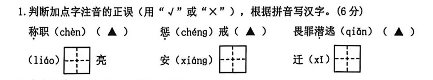 先来看七年级的试卷,第一项是字词。