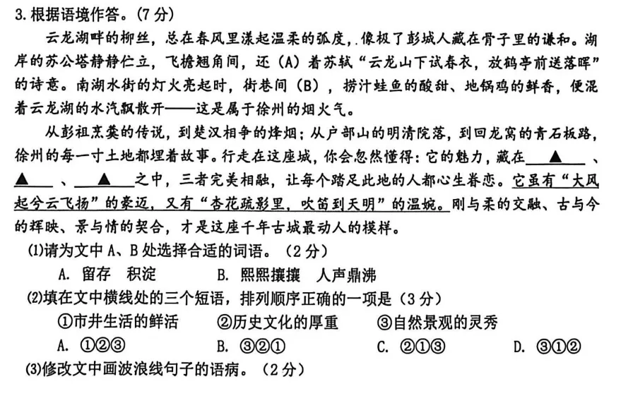 >从押题的角度说一说徐州七年级期末语文试卷