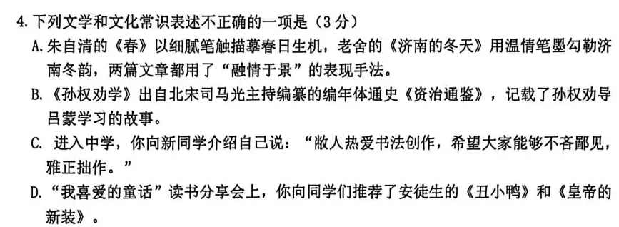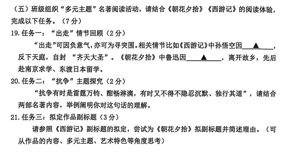 再往后是整本书的阅读,因为七上就两本书,考前我就说了最好都看看,有可能会放在一起出题。果然这次是这样的出题方式。