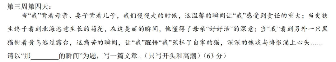 重点看一下课外阅读,这次考试考的是田雪梅的《给鸟雀留“冬粮”》。一共五道题,分别是情感归纳,词语赏析,段落作用,标题作用以及主题探究。