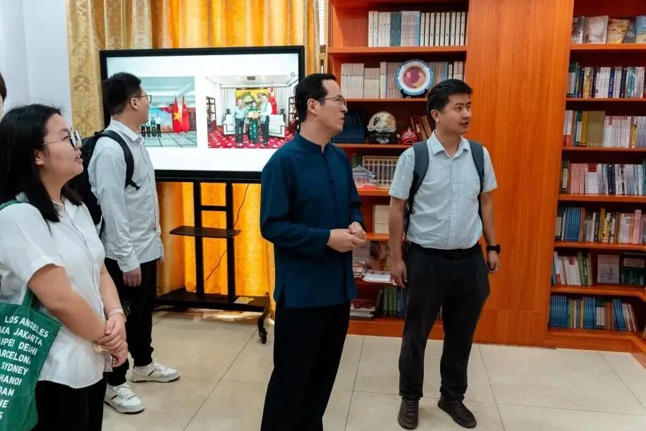座谈活动伊始,徐副总领事系统讲解了总领馆的发展沿革与职能,并带领师生参观了中越外交图片展。珍贵的影像资料生动呈现了中越两国高层交往的重要时刻,帮助同学们更直观地理解元首外交在周边外交中的引领作用。徐副总领事指出,总领馆既是国家总体外交的重要环节,也是联系中越两国民众、服务在越中国公民和机构的重要窗口。