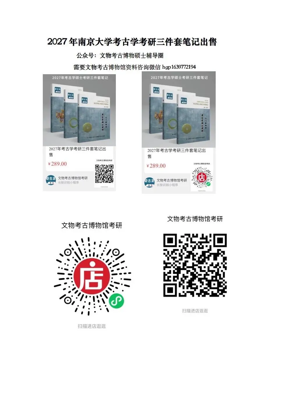 2027年考古学考研三件套笔记出售链接二维码