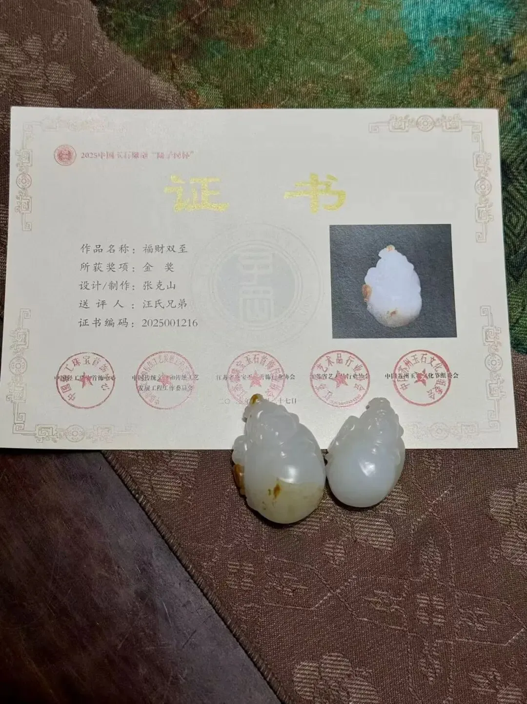 2025年11月,这件作品获得了“陆子冈杯”金奖。