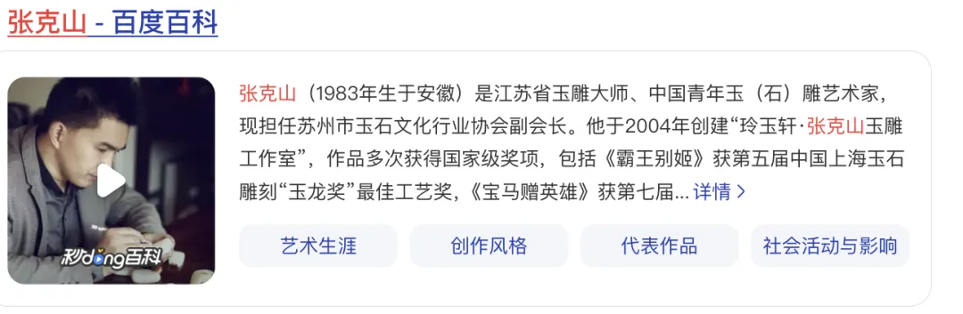 张克山老师的资料,网上都能搜到。他在业内过去有个别号,叫张克万,意思是找他雕玉,工费一克就要上万。