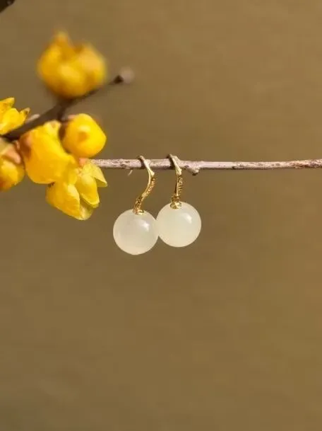 耳间明月:白玉耳钩