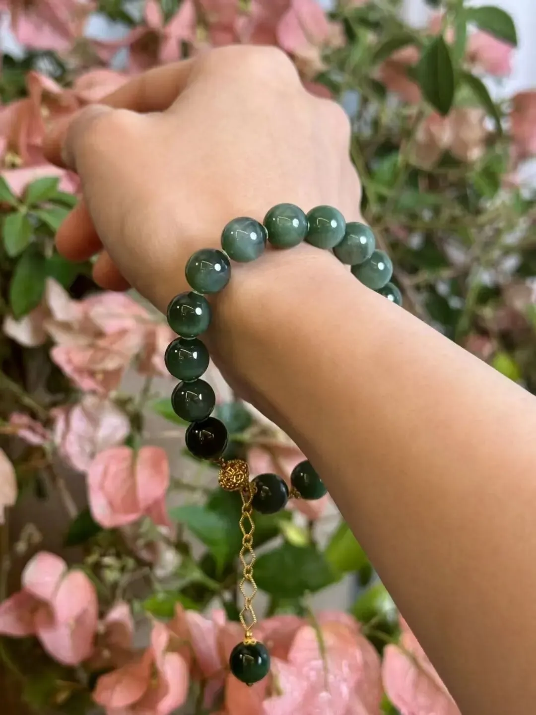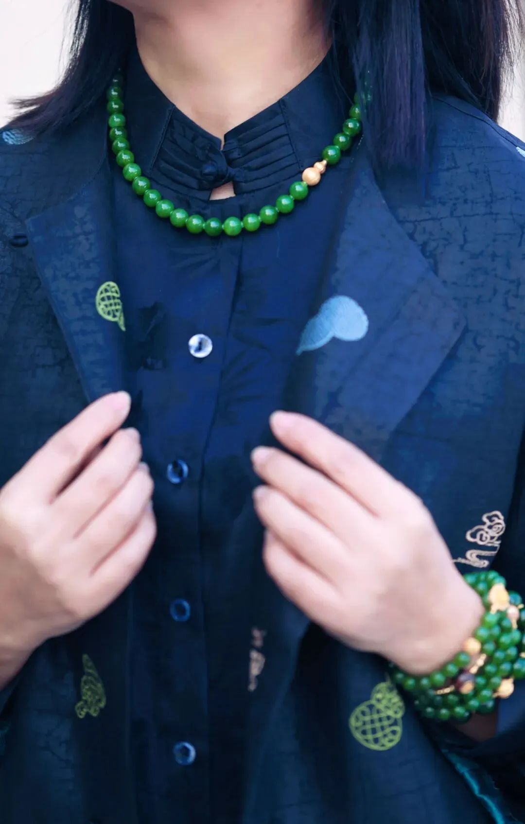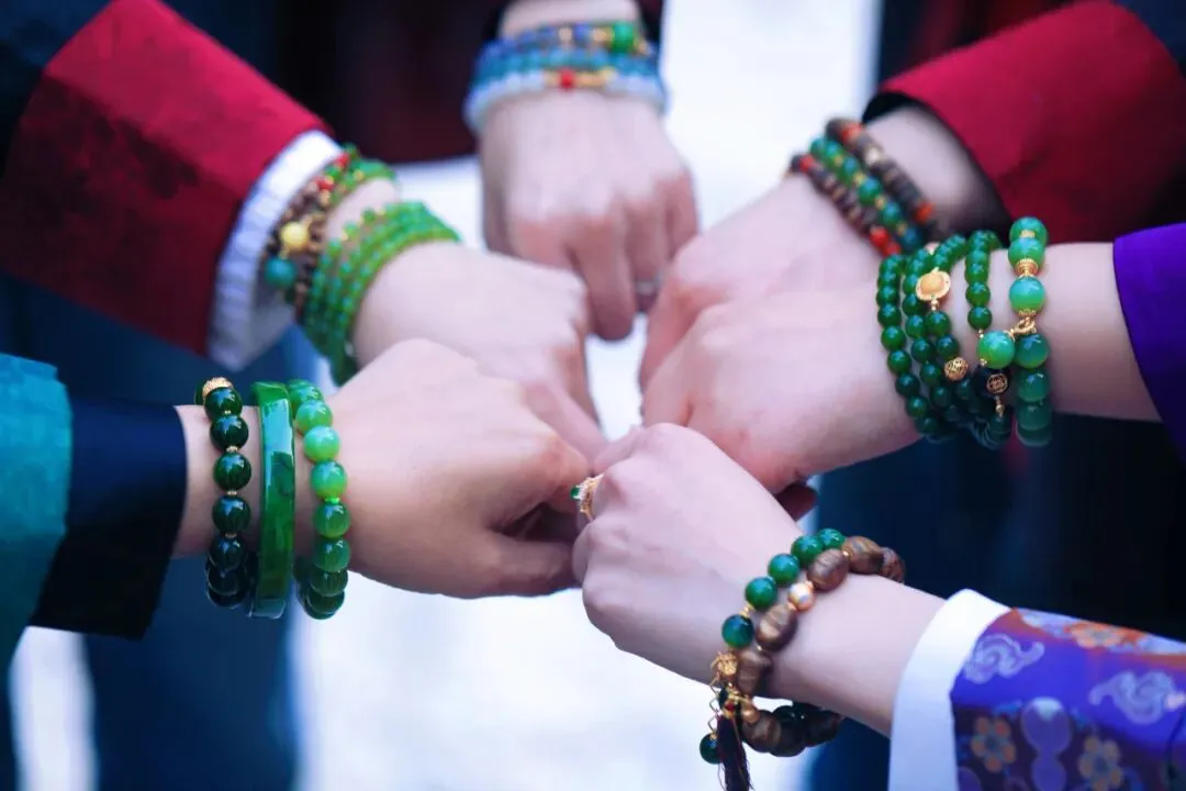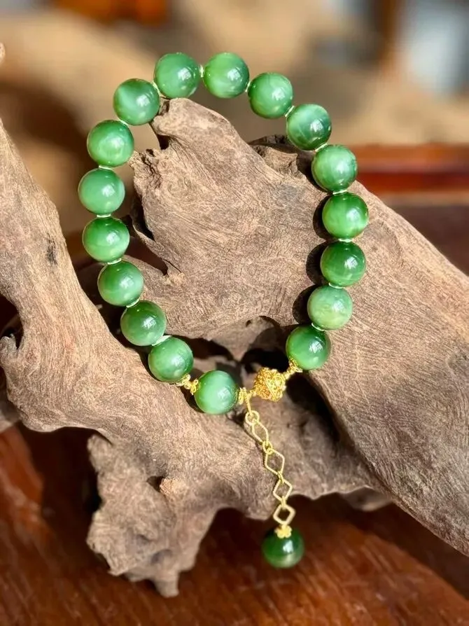 老钱贵族,菠菜绿手串。