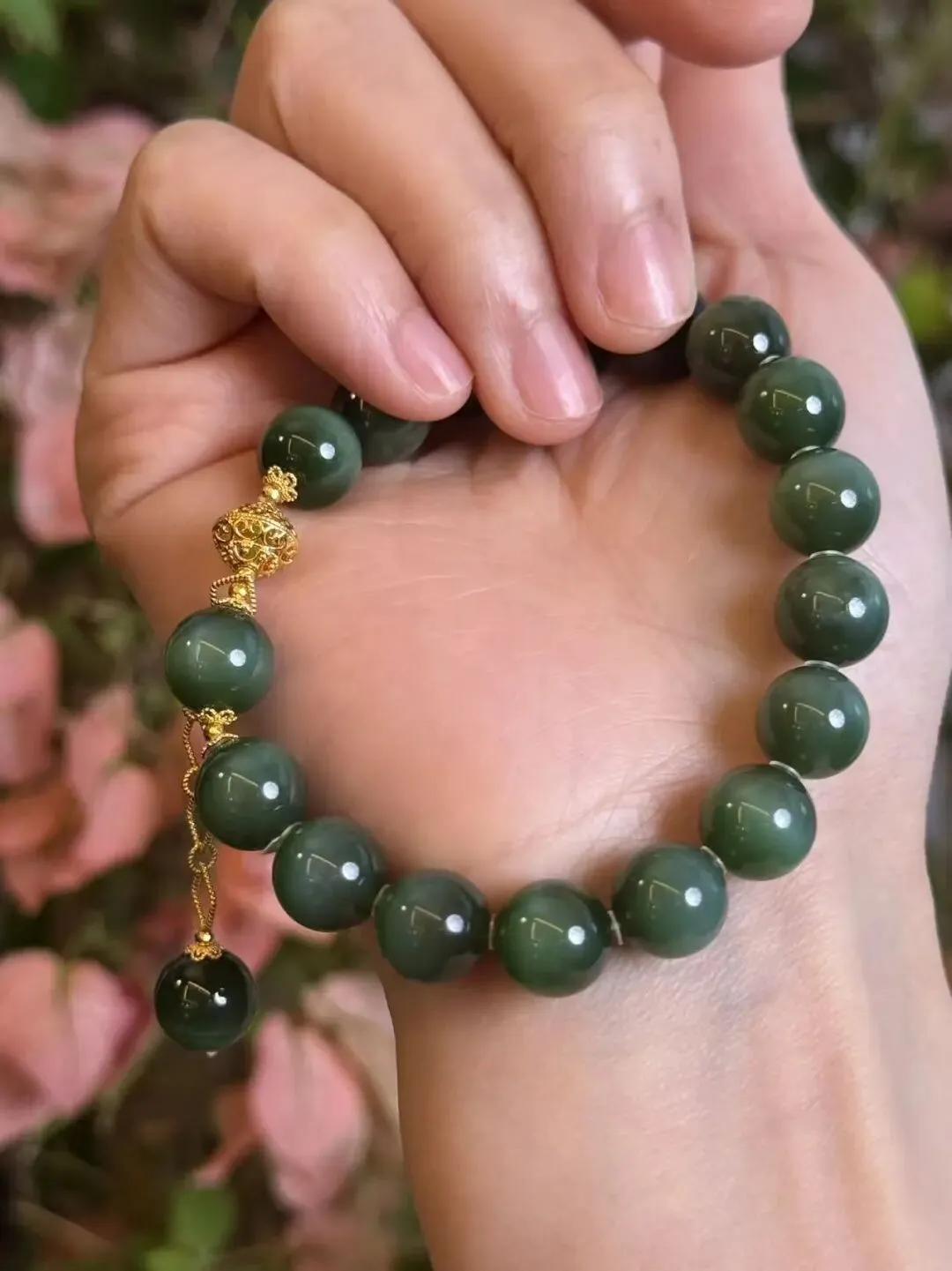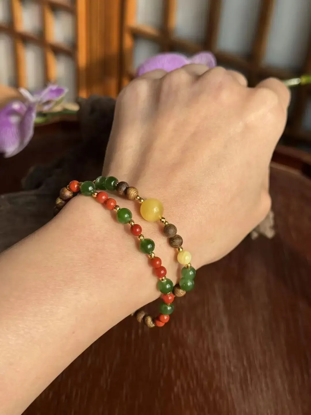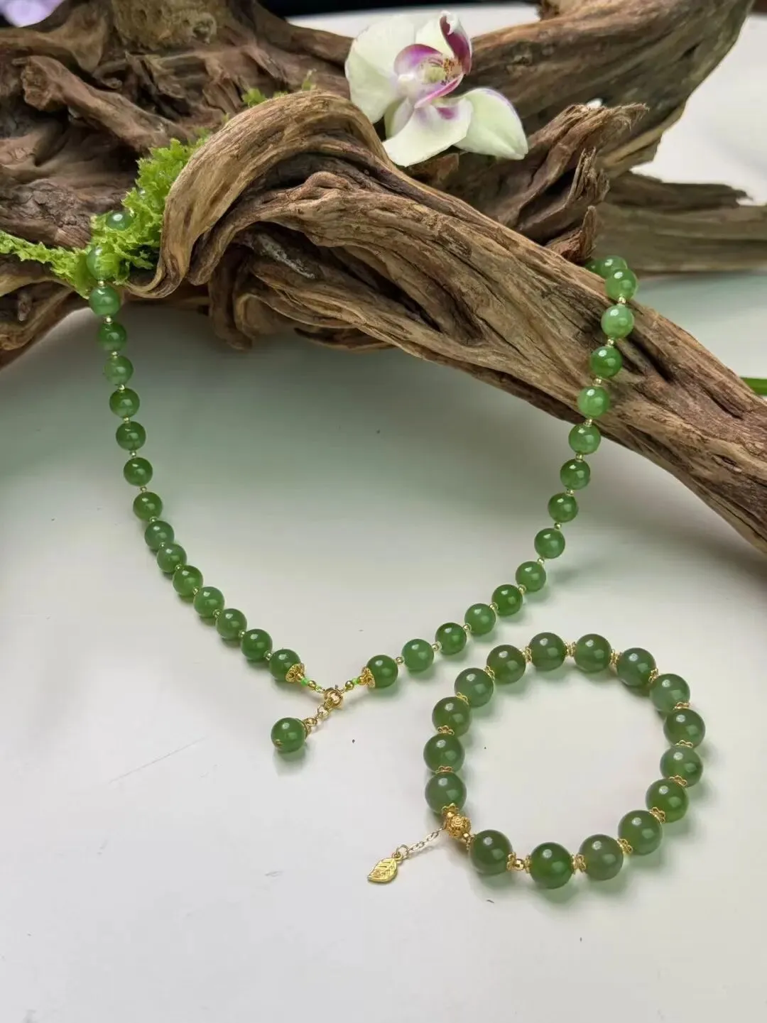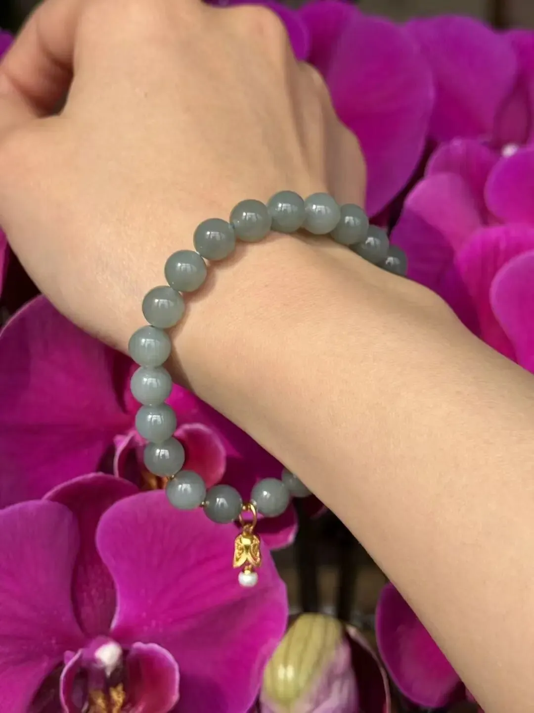 老钱贵族,菠菜绿手串。