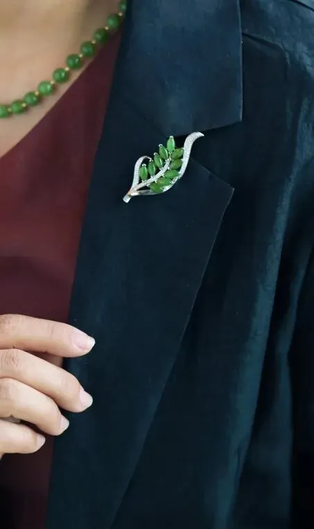 遇水则发:碧玉叶子胸针