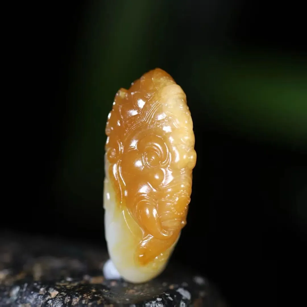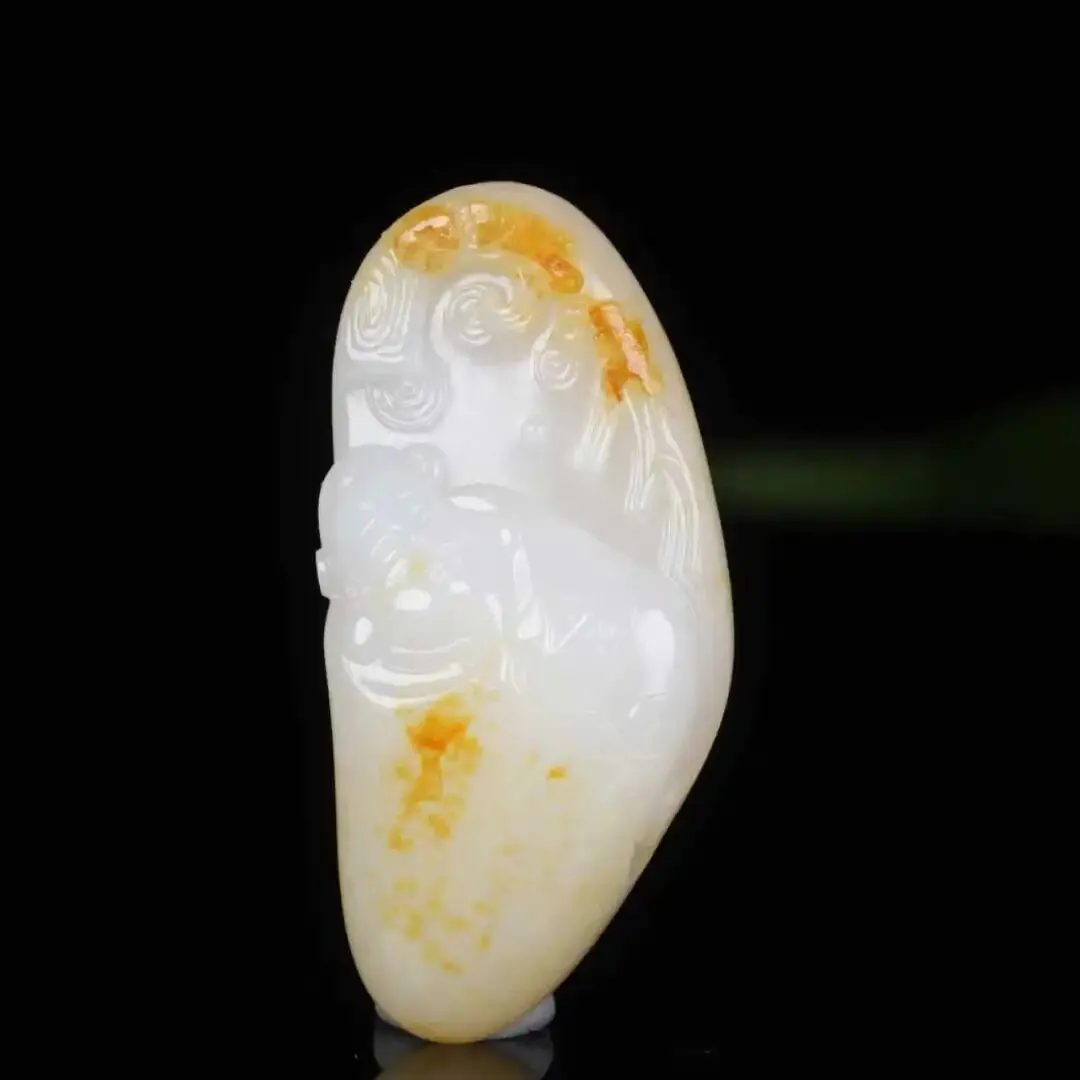 获奖的原作是用新疆籽料雕的,有大佬已经出价百万要收,我们被独家授权复刻这件作品。复刻版采用了新疆且末料,“且末归来不看籽”,玩玉行家都知道,且末料是极具性价比的新疆料,品质无限接近于籽料,但价格比籽料低很多。