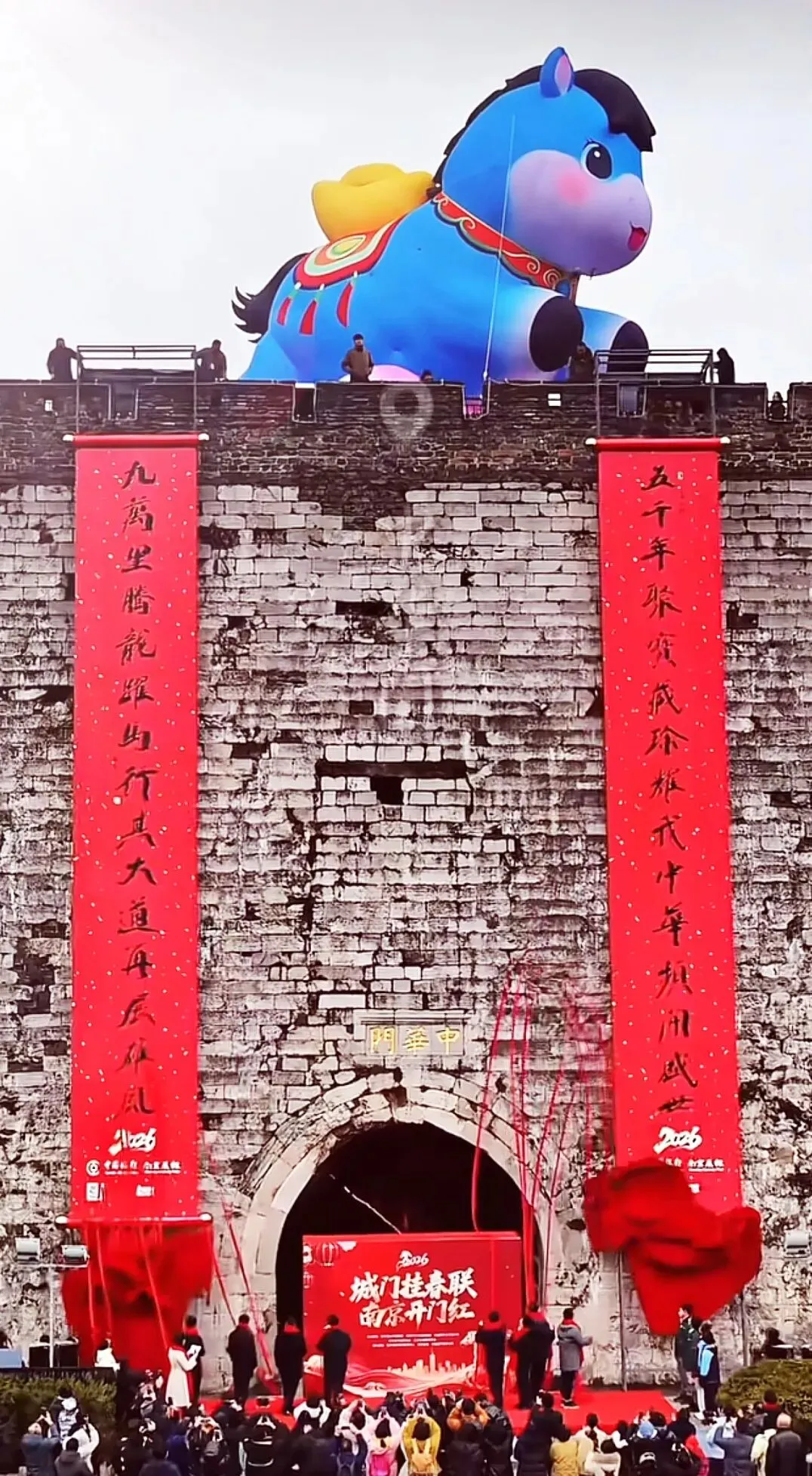 当晨曦的第一缕阳光抚过秦淮河,南京十三座城门上的巨幅春联便悄然被点亮。红,是那种沉淀了六朝金粉又饱蘸了新年喜气的红;墨,是吸纳了钟山烟雨又挥洒出万家期许的墨。南京的春节,就这样在明城墙厚重的基石上,绽放出跨越时空的祥和画卷。