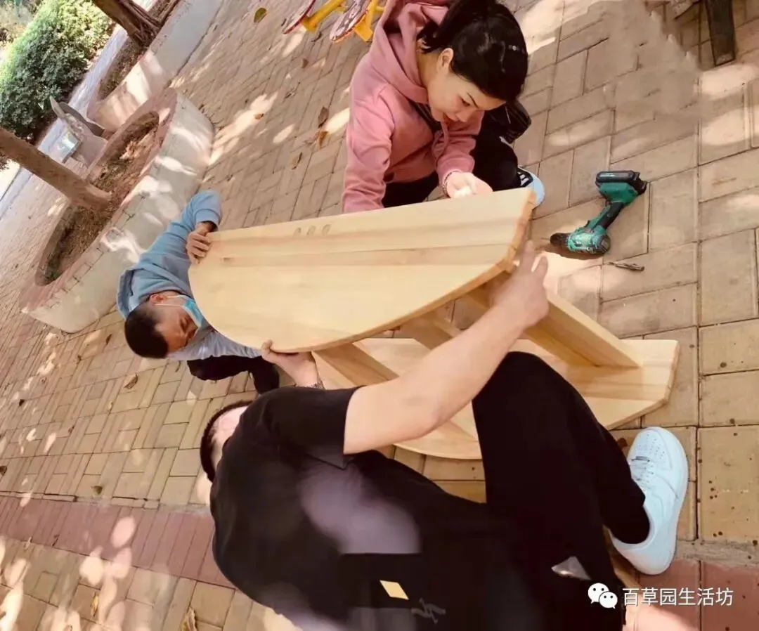 其实,我真的什么都没有干。我就拿了四大箱子木头儿,几十张粗细不等的砂纸。家长和孩子们,装起了两把椅子坐在那里,很舒适的在打磨自己的“宝贝”家长刚开始没有动手,孩子们动起来了,需要帮助了,家长也义不容辞就上了,他们装起了一个大摇船,一次4个的上。坐在摇船上手上还是不停的。大家大有辰宝儿10:02分到达南三楼22列书架的情形。玩手机的大孩子,也被吸引过来了。迈出第一步“我能做这个么”的那些反复尝试,装来试去的就是大孩子们,小孩子只有看的份儿,家长也抱着手,但很快就自然分工了。此处省去三万字。
