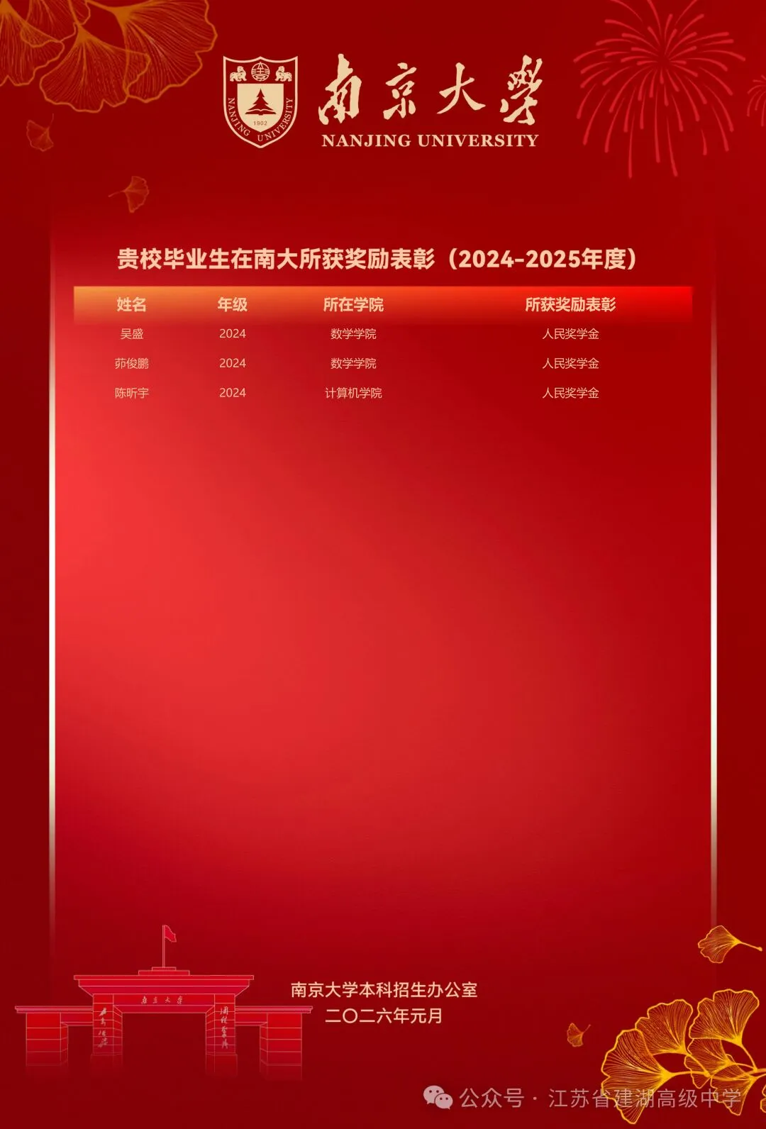 喜讯乘风至,佳音暖人心。近日,南京大学向我校发来喜报,我校多位毕业生在2024-2025学年荣获南大各类嘉奖,表现卓然。