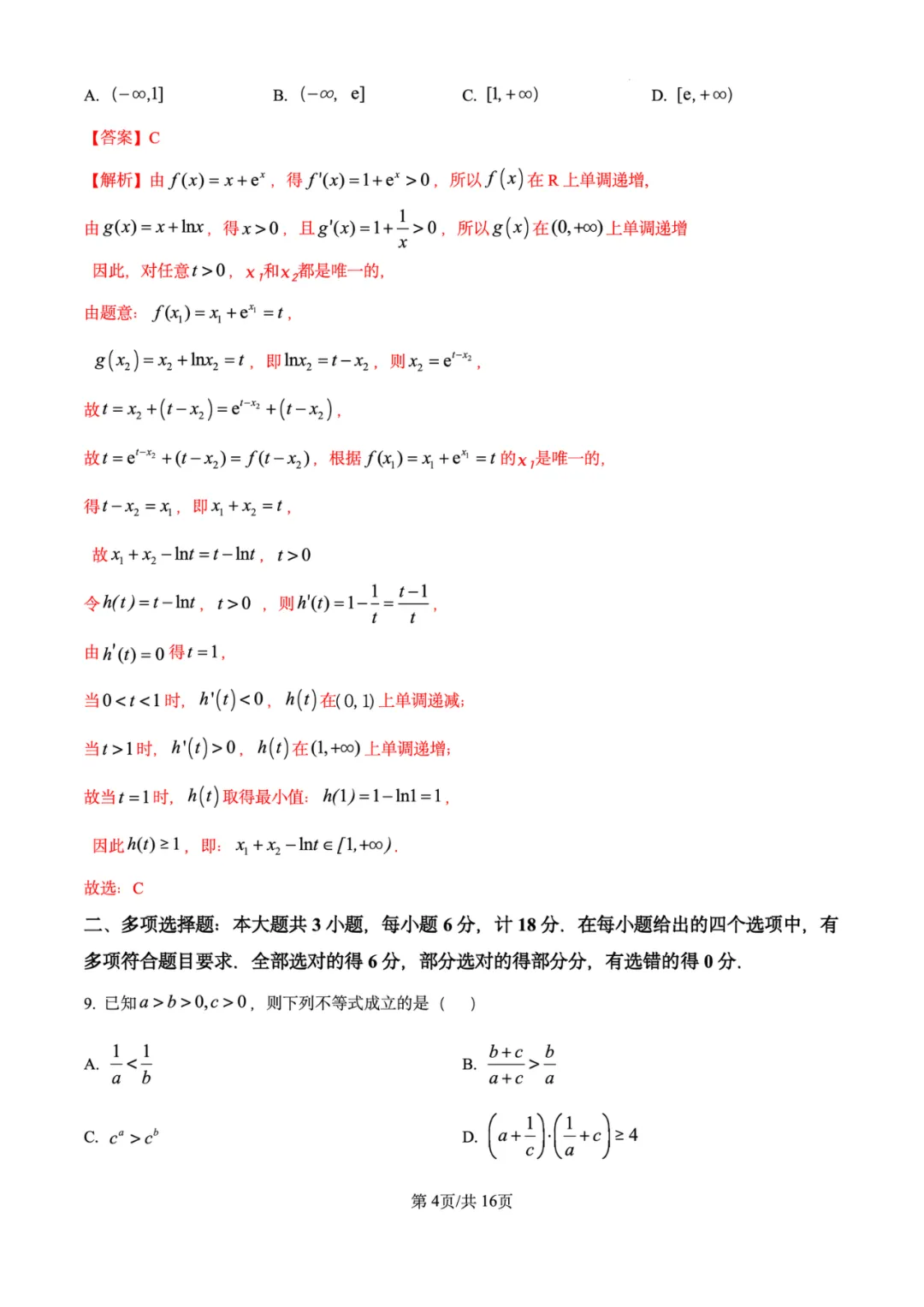 2026年无锡市高三期末考试数学试卷