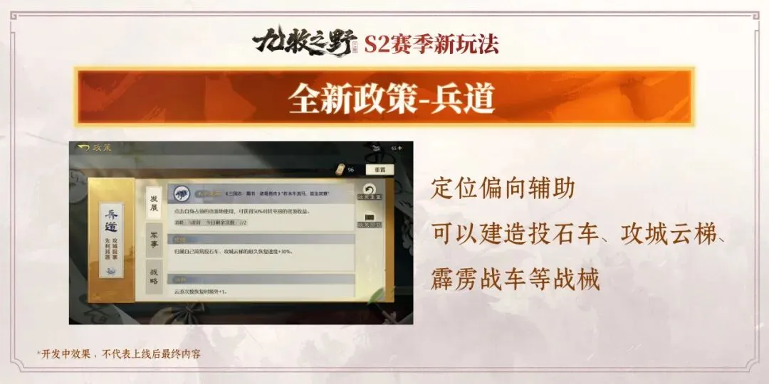 S2赛季当中,政策系统将迎来重要扩展——兵道。