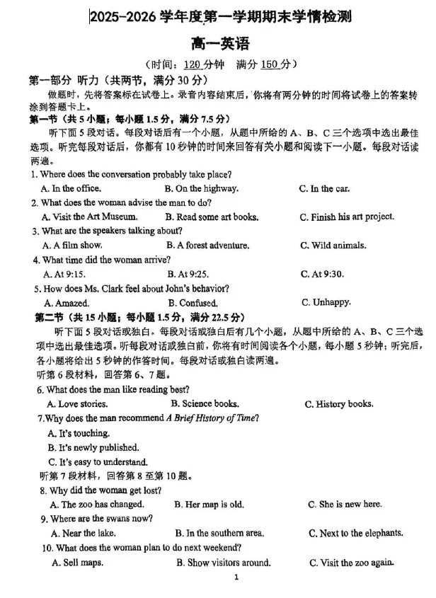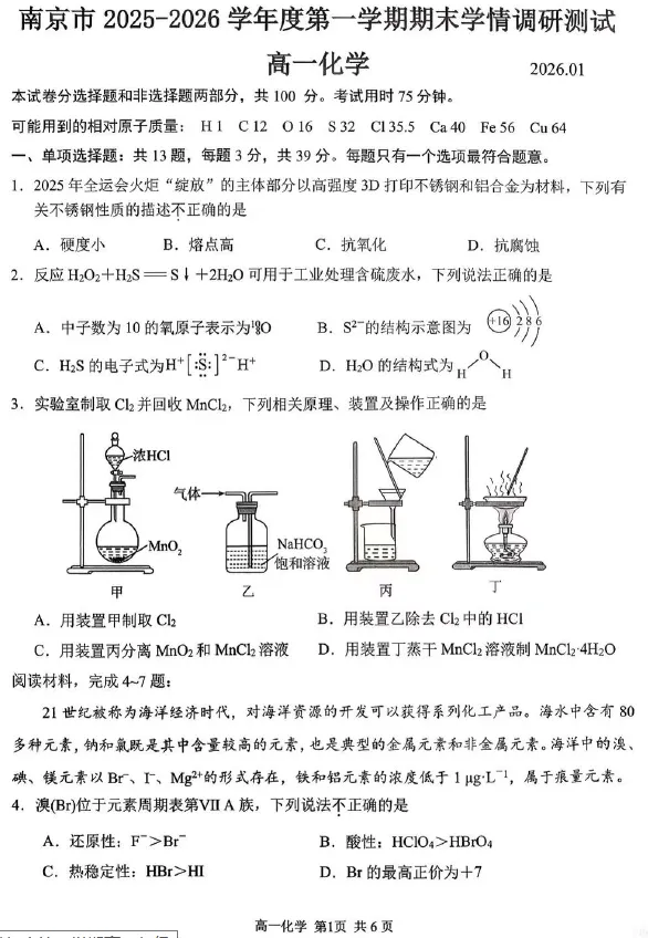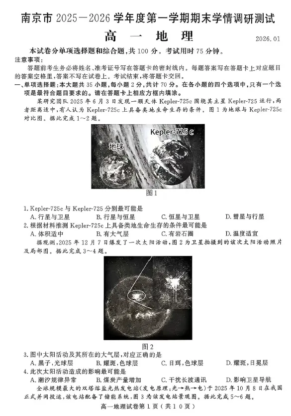 ⭕⭕🌷「江苏省南京市2025-2026高一上期末.rar」