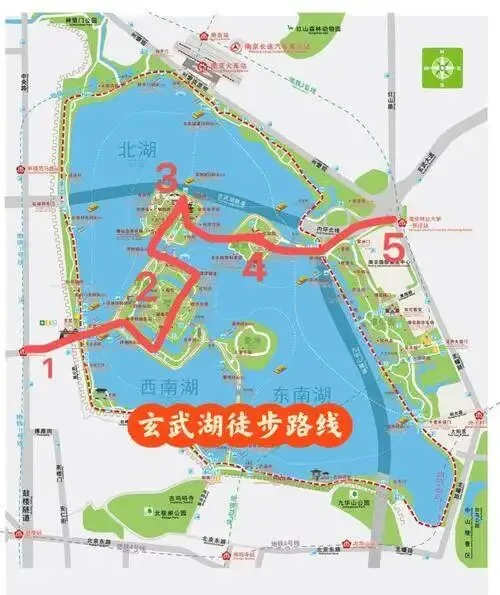 慢走路线给一条,鸡鸣寺地铁口出来上城墙,沿台城到玄武门下,湖边走到梁洲再回地铁,两个小时轻松。