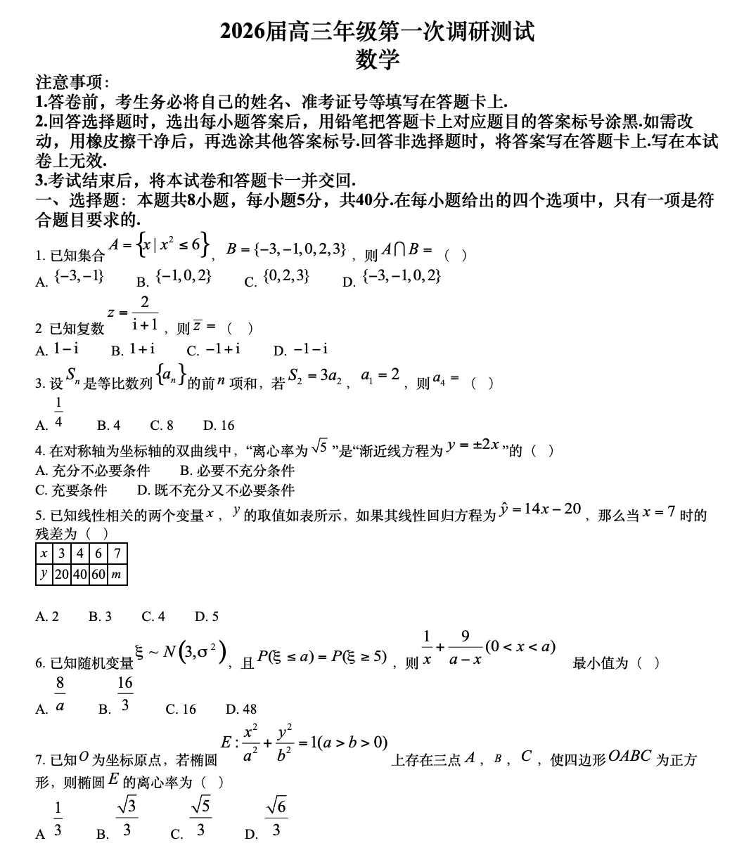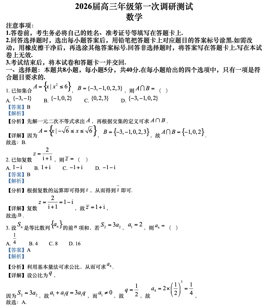 点击关注,后台发送信息【江苏省徐州市2026届高三年级第一次调研测试数学试题】领完整word版试卷+答案解析!