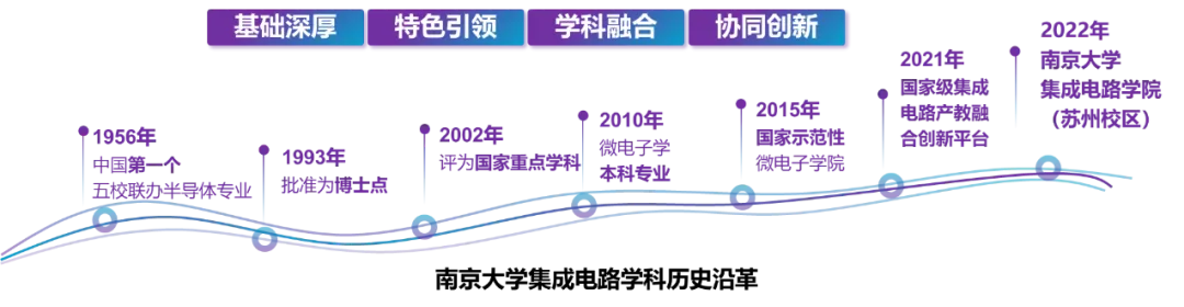 南京大学集成电路学科最早源于1956年我国第一批半导体专业,六十多年来,在半导体领域取得了一系列标志性成果,培养了一大批学术和产业人才,为中国半导体事业的发展做出了突出贡献。