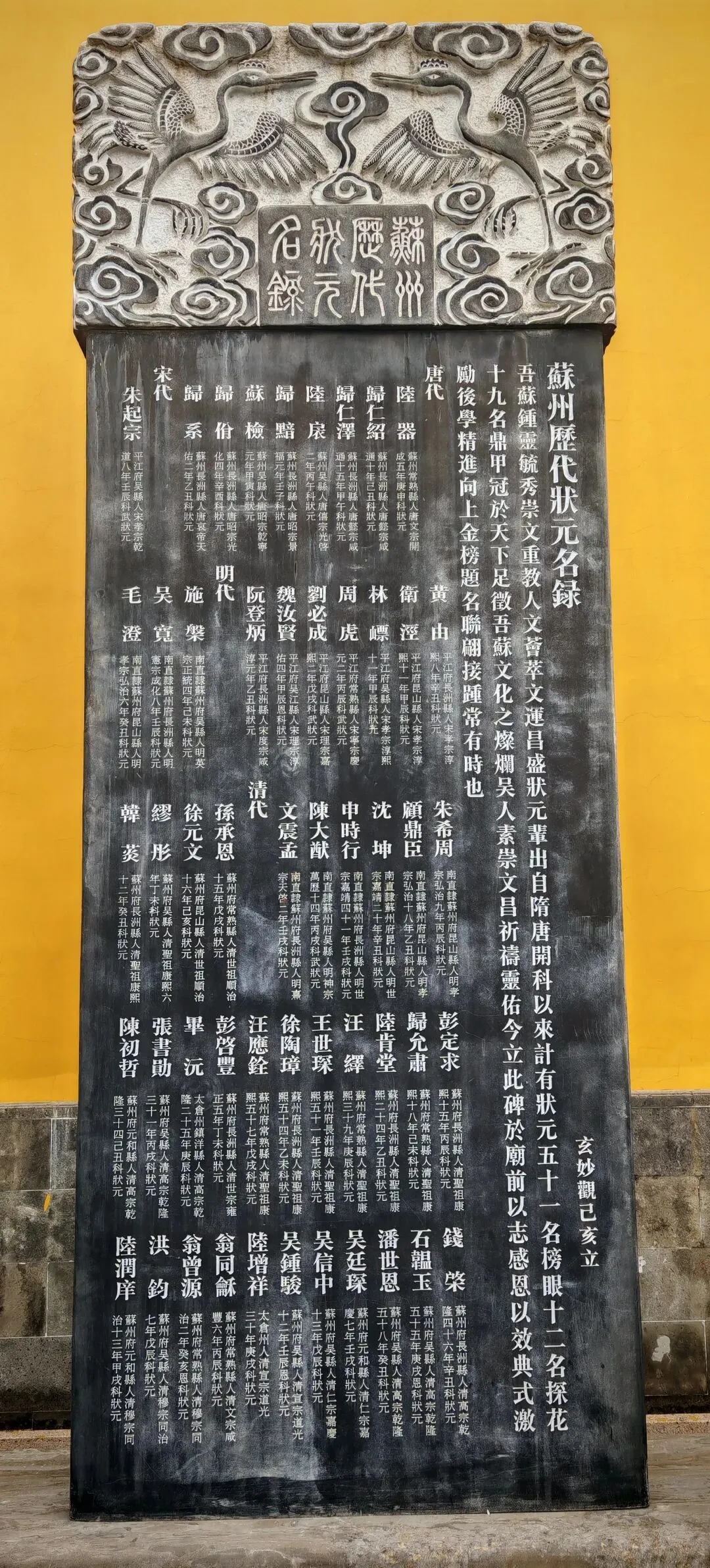 苏州玄妙观文昌殿门口有一块“苏州历代状元名录”碑,记载了苏州从唐朝到清同治年间五十一个状元的名录。唐朝宋朝状元大家比较陌生。明朝清朝的状元大家应该有好多熟悉的。比如明朝的苏州状元,顾鼎臣,这个名字老人很熟悉,《顾鼎臣》是苏州评弹经典曲目。申时行和文震孟大家应该也有所耳闻。到了清朝,几个状元大家应该更加熟悉了。其中有六元状元钱棨。何谓六元状元,就是他钱棨在县试,府试,院试,乡试,会试和殿试,都拔得头筹。潘世恩状元,今天苏州状元博物馆所在建筑,就是当年潘世恩府邸的一部分,大家想更加深入具体的了解苏州状元的历史文化,可以去参观一下这个状元博物馆。还有常熟的翁同龢,同治皇帝光绪皇帝的老师。最风花雪月的是苏州红绿状元,洪均和陆润庠xiang.洪均有可能大家有点不熟,但是洪均的小妾赛金花大家都是听说过。还有哪些大家熟悉的状元,留言区留言学习一下。