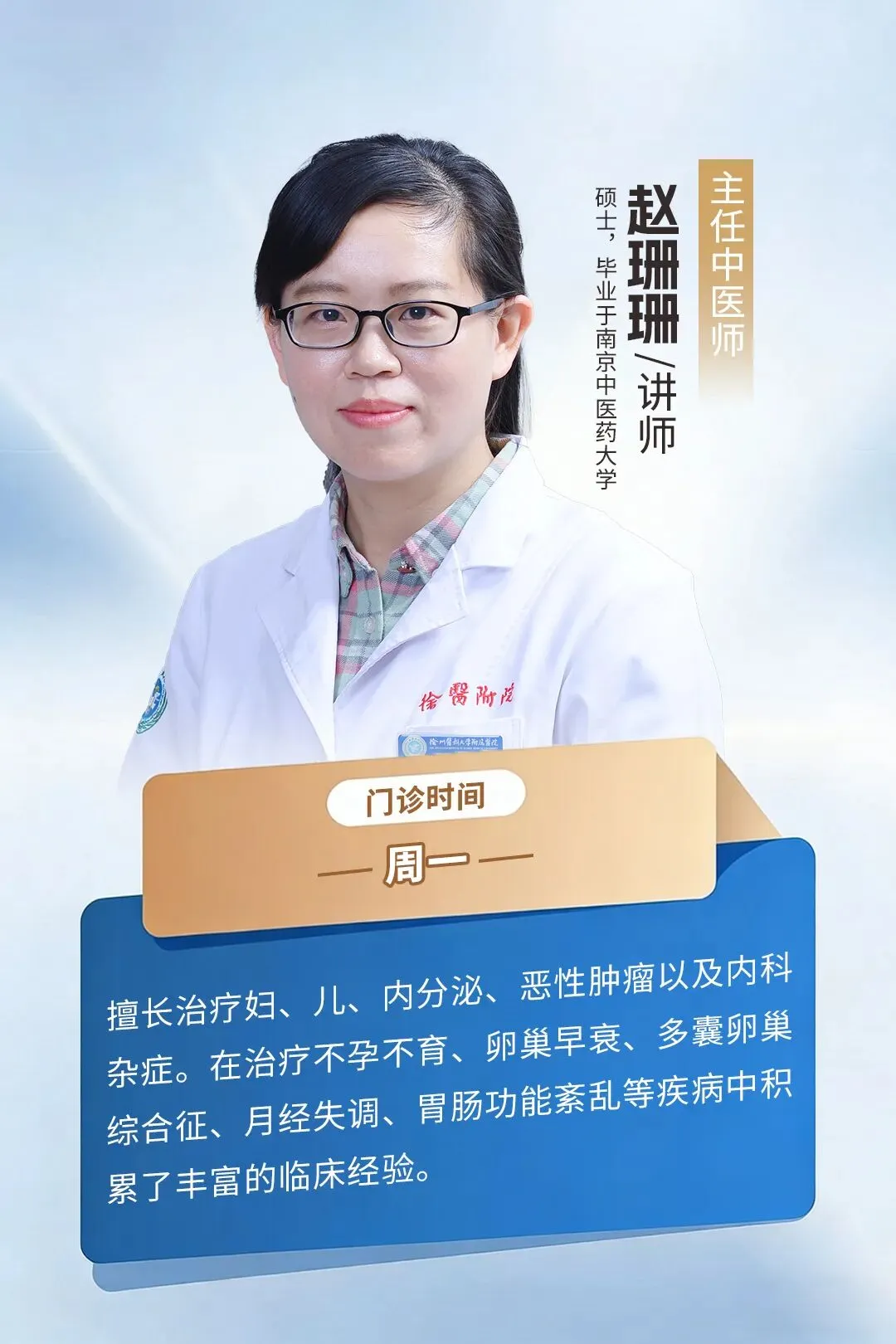 中医内分泌和生殖门诊的主任中医师赵珊珊