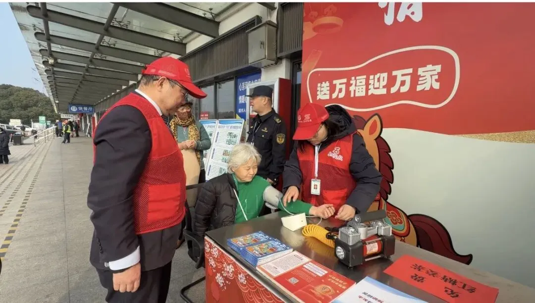 绕城公司充分发挥党建引领作用,联合多方力量共同筑牢春运服务防线。公司第六党支部联合漕湖街道卫星社区、高速交警七大队、交通执法八大队,共同启动“文明出行·平安春运”志愿服务活动。党团员志愿者在北桥收费站广场设立服务点,提供路线咨询、政策解答、热水补给及秩序维护等服务,同时,支部党员深入社区,走访慰问高龄老人与困难家庭,送上生活物资与新春祝福,以“党建红”引领“服务暖”,延伸了关怀触角。