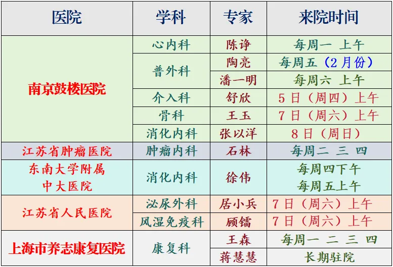 专家有约 | 2月3日至9日,南京、上海专家来区人民医院开展诊疗工作信息