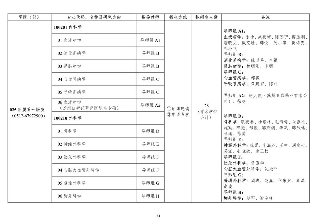 >苏州大学医学院2026年博士招生专业目录