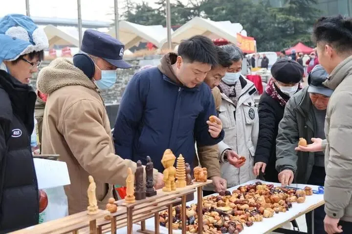 “好味大集”里更是人声鼎沸。二十个风味小吃摊依次排开,把子肉在深褐色卤汁里颤巍巍地炖着,肥瘦相间,浓油赤酱;炸丸子的油锅旁,总是围满了等待出锅的食客。在“丰县烧饼+羊盘肠”的套餐摊位前,市民张先生正捧着一份刚组合好的美味,吃得赞不绝口:“昨天来就听说这个套餐是‘隐藏爆款’,今天特意找过来。这烧饼酥脆,羊盘肠咸香,搭配起来真是绝了,一下子就把过年的‘馋劲儿’勾出来了。”他笑着说,这份地道组合不仅是味蕾的享受,更是一种熟悉又温暖的年味记忆。现场推出的“书记新春盲盒”依旧是最受欢迎的亮点之一,市民们挑选、品尝,享受着这延续了两天的年味盛宴。