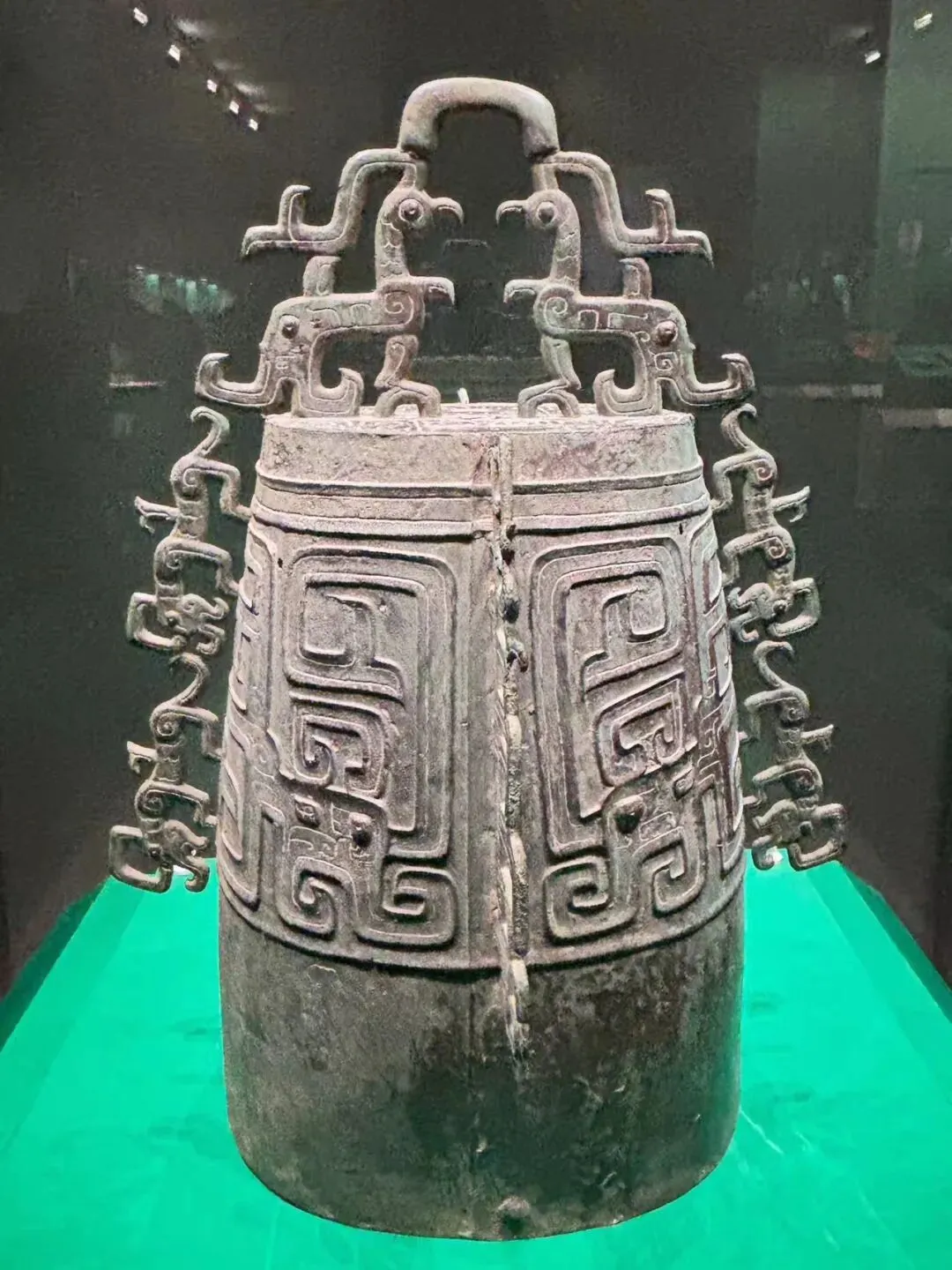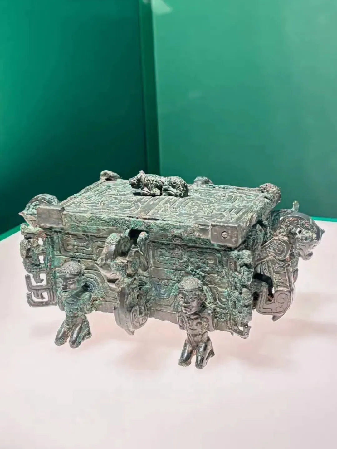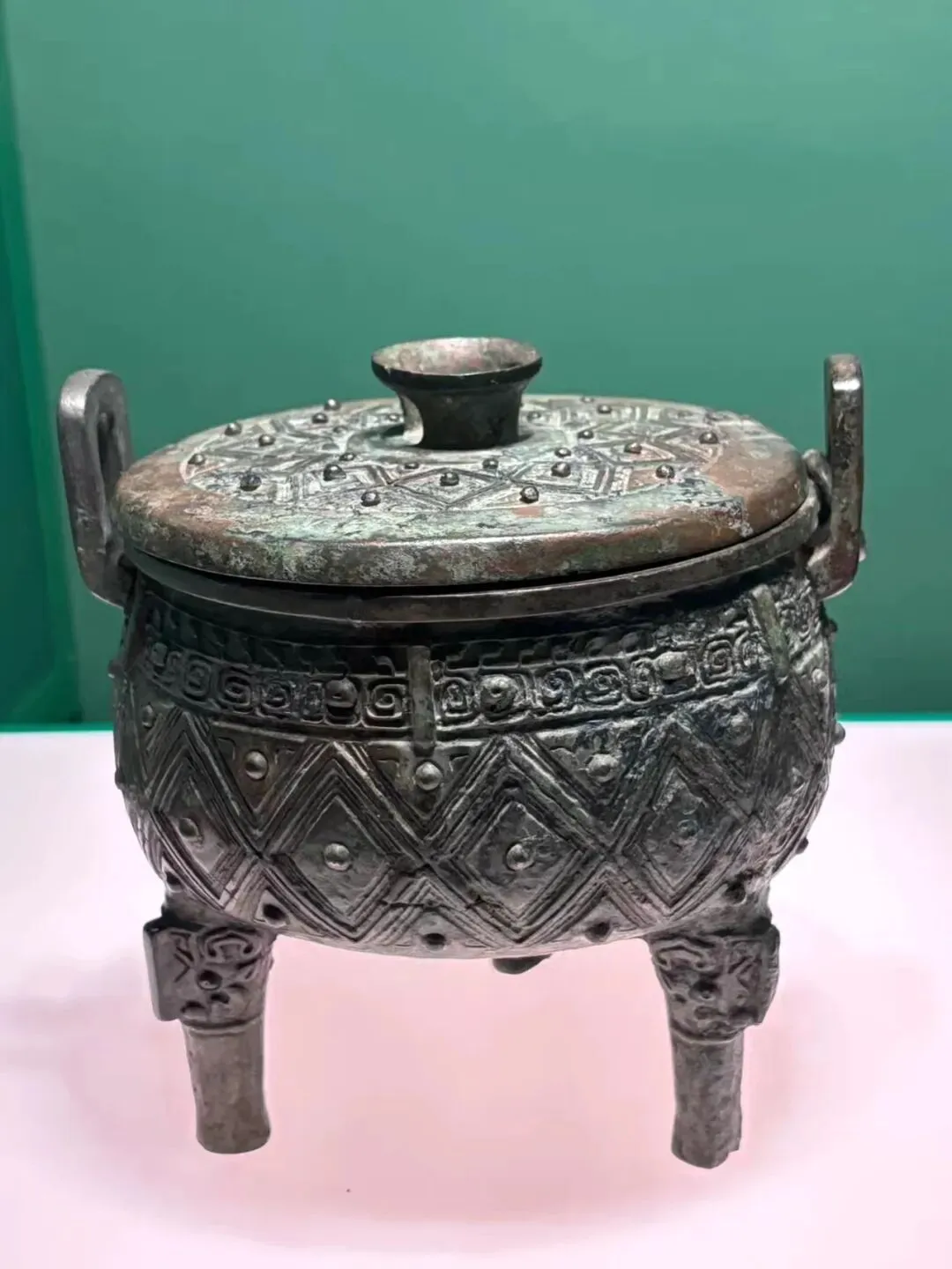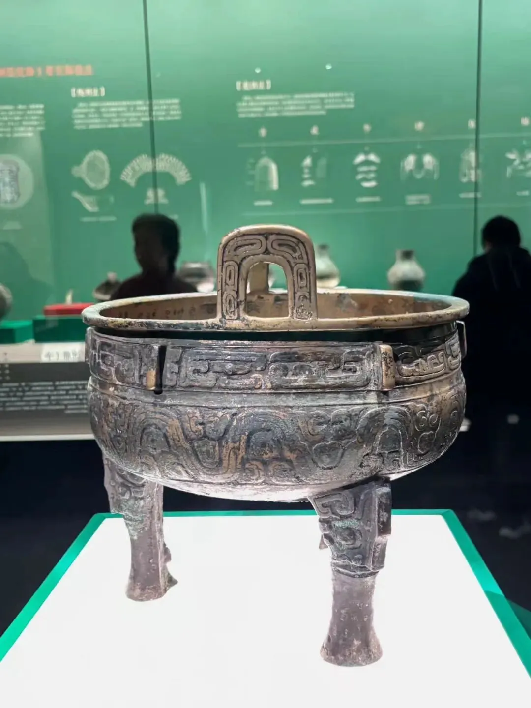 在诸多展品中,虽然随着历史的前进,展品的制作技术越来越先进,也越来越精美,但不知为何还是对青铜器情有独钟。站在青铜器的展柜前,左看右看,前看就看,痴迷于展品的纹样、造型,折服于古人技艺的精湛、纯熟,惊诧于古人的审美观和宇宙观。