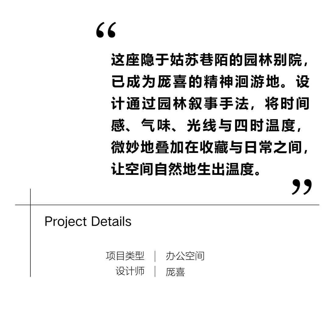 在苏州办公室「喜园」的创作中,厐喜强调通过设计构建公共空间与美学传播的结合,使空间不再是单纯的物理存在,而是充满了精神与情感的交流场所。