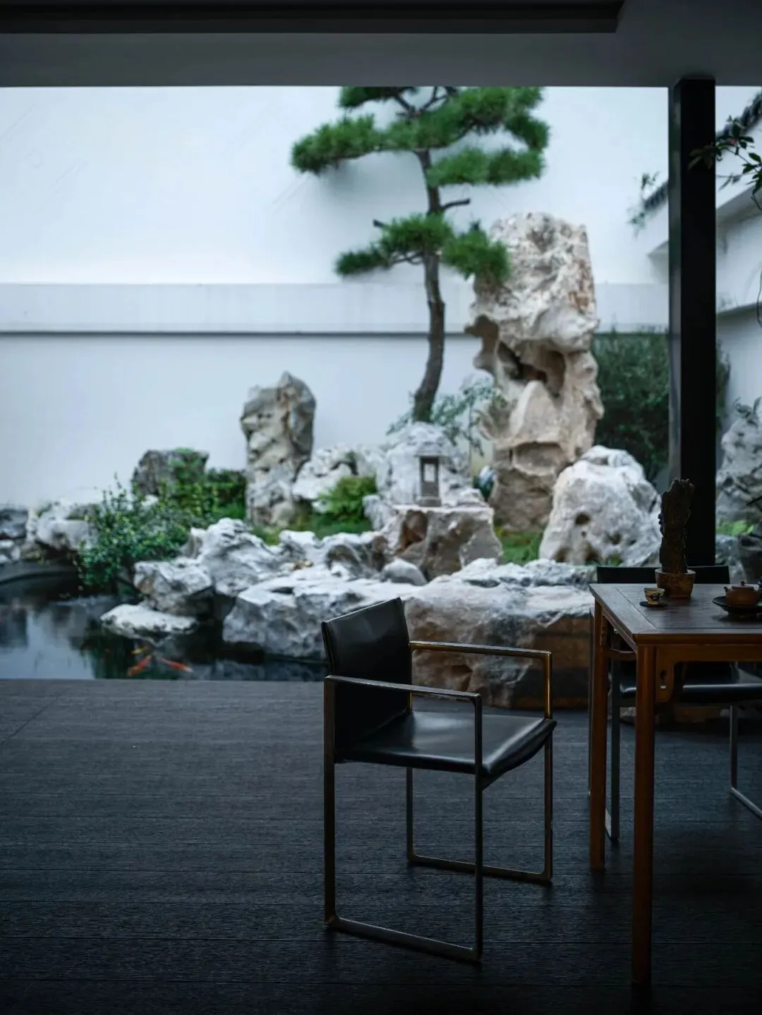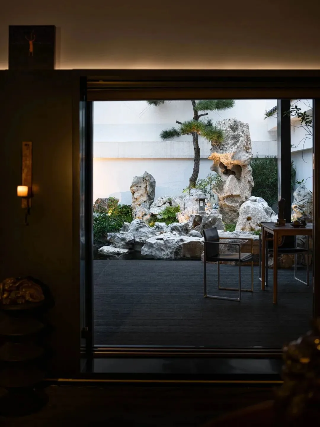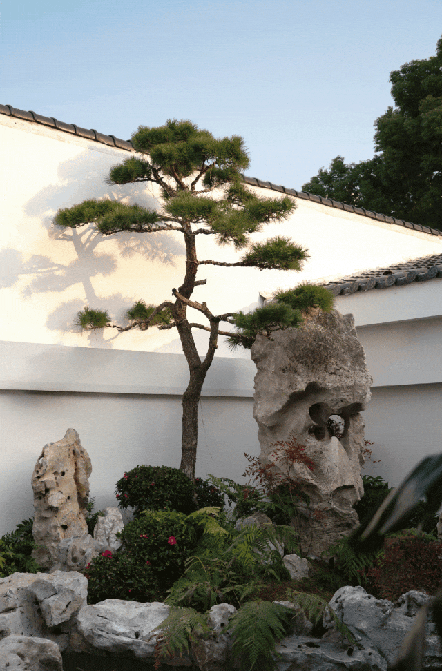 在「喜园」100㎡的院子里,厐喜选用了大量苏州传统元素,如太湖石与松柏,融入到景观设计中,既具现代感又不失古典韵味。