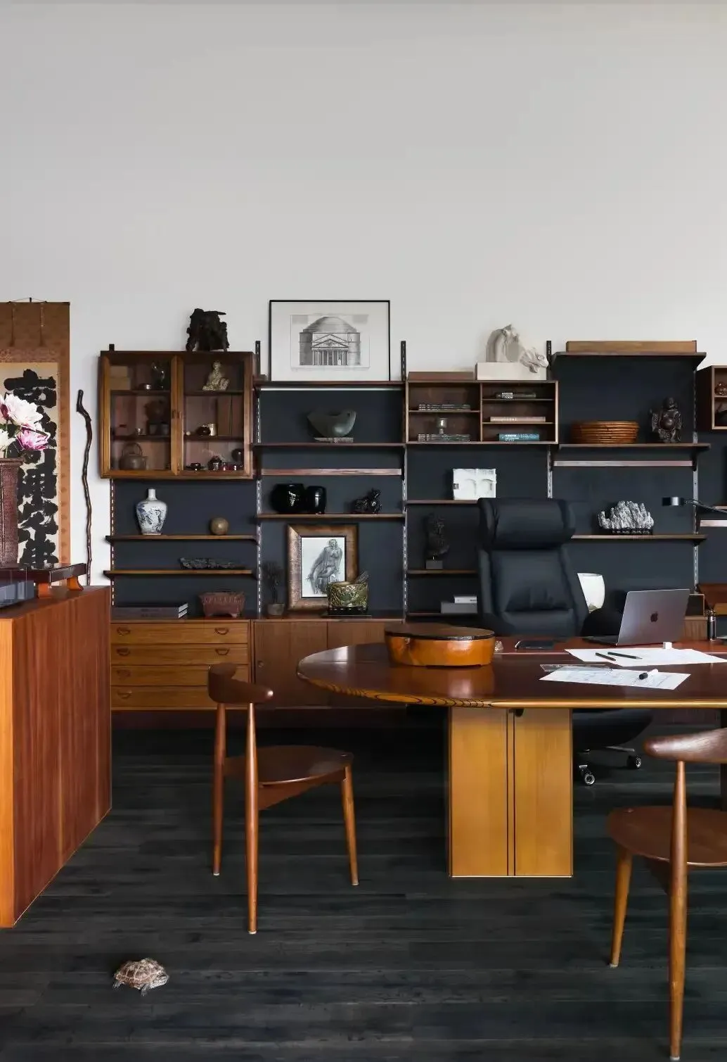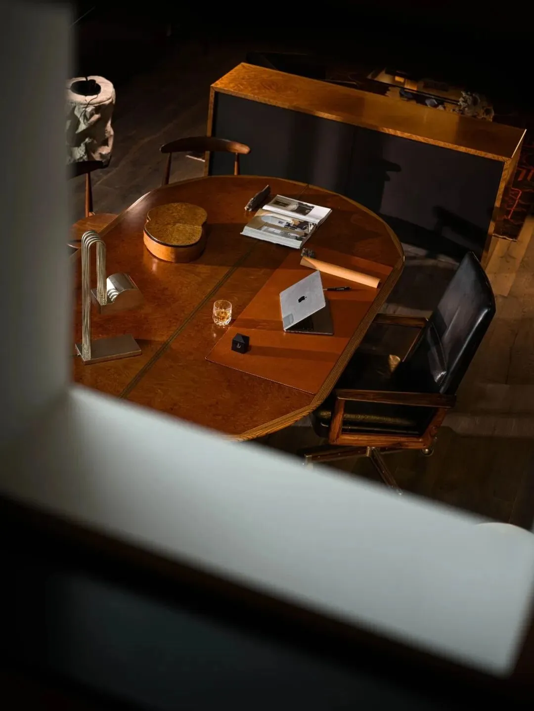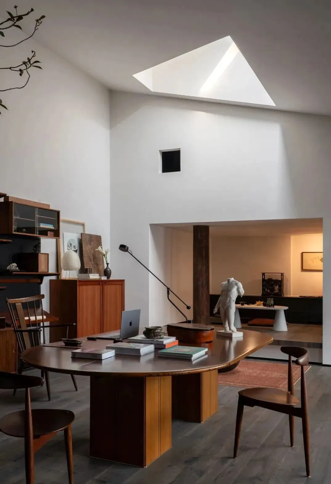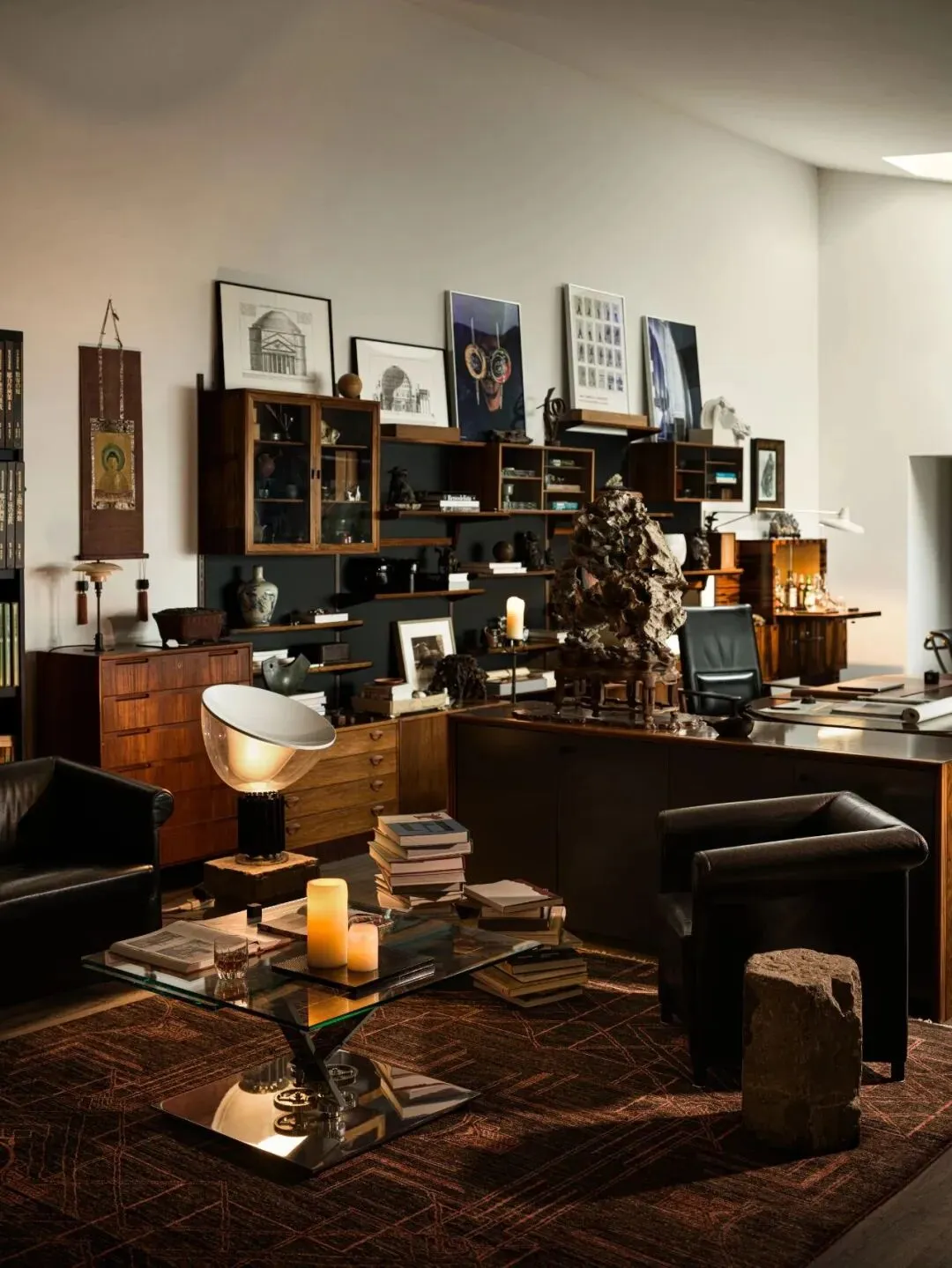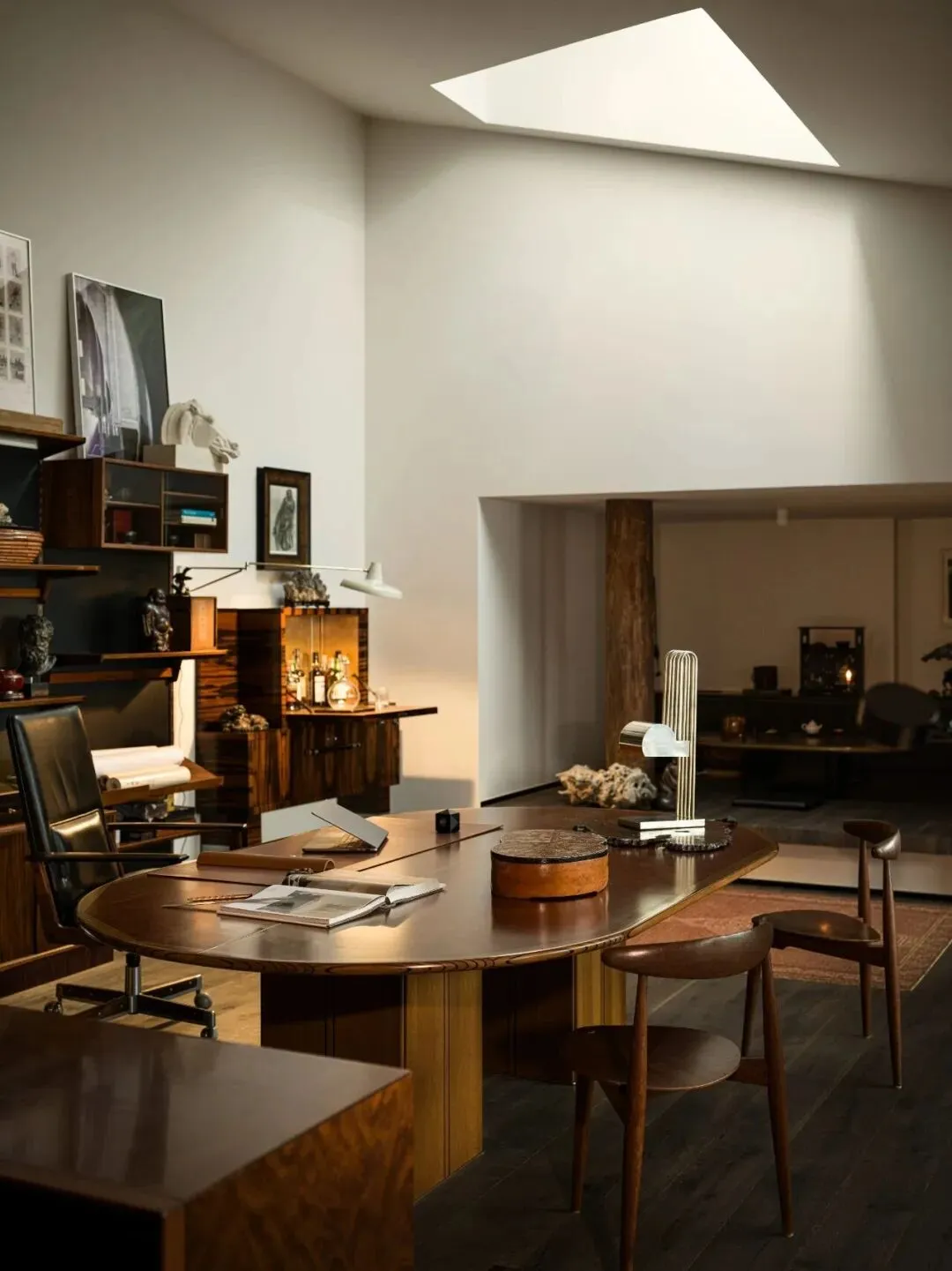 在工作区,厐喜特别选用了来自Maxalto的樱木大桌,以及经典的50年代设计书架,既展现了他的设计品位,也融入了对“古今结合”的理念。