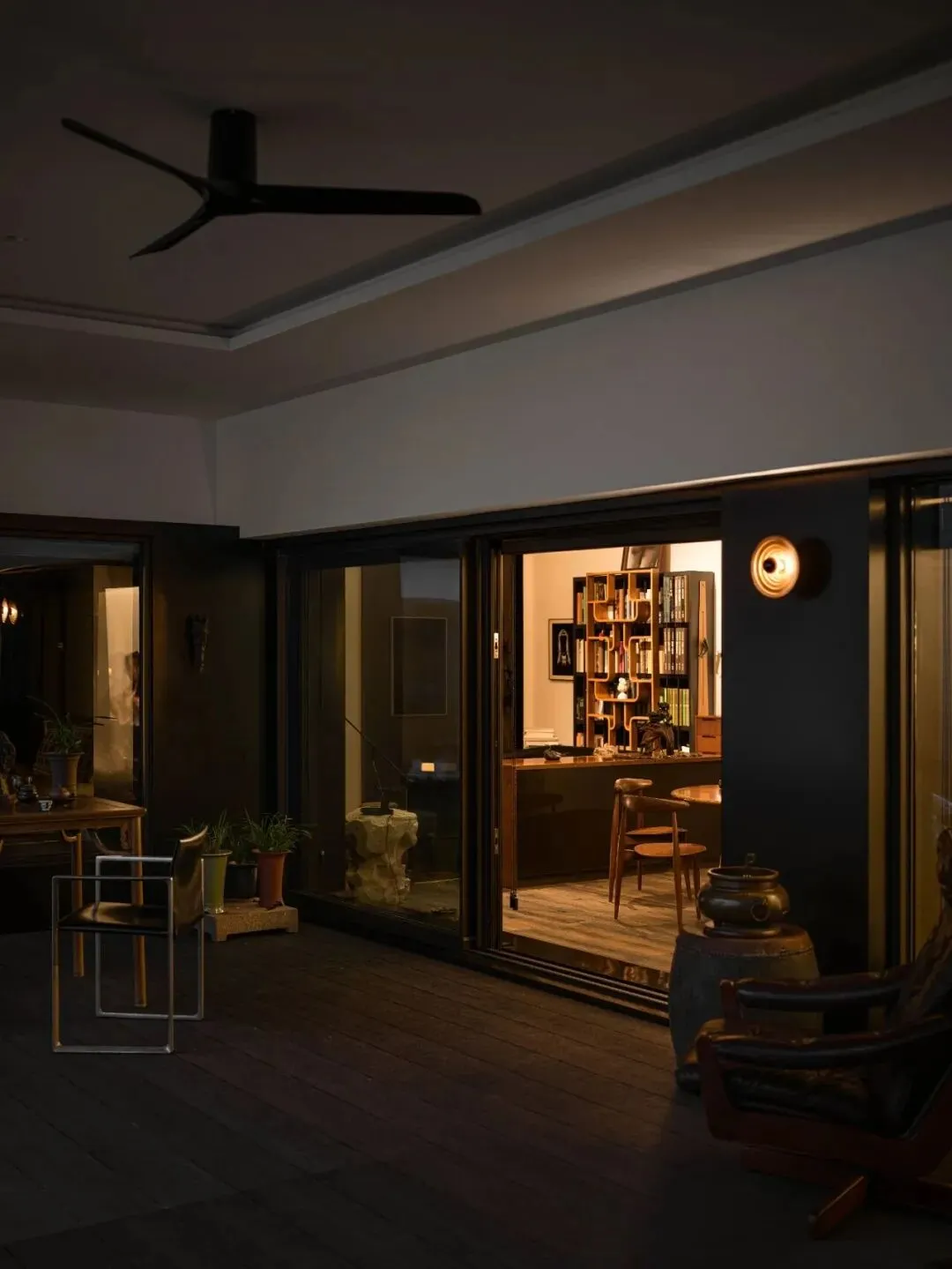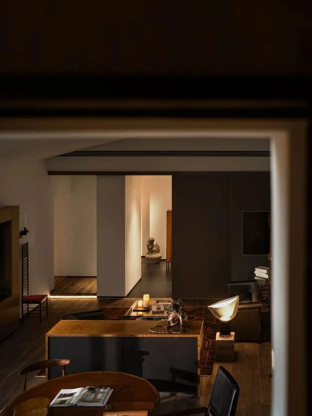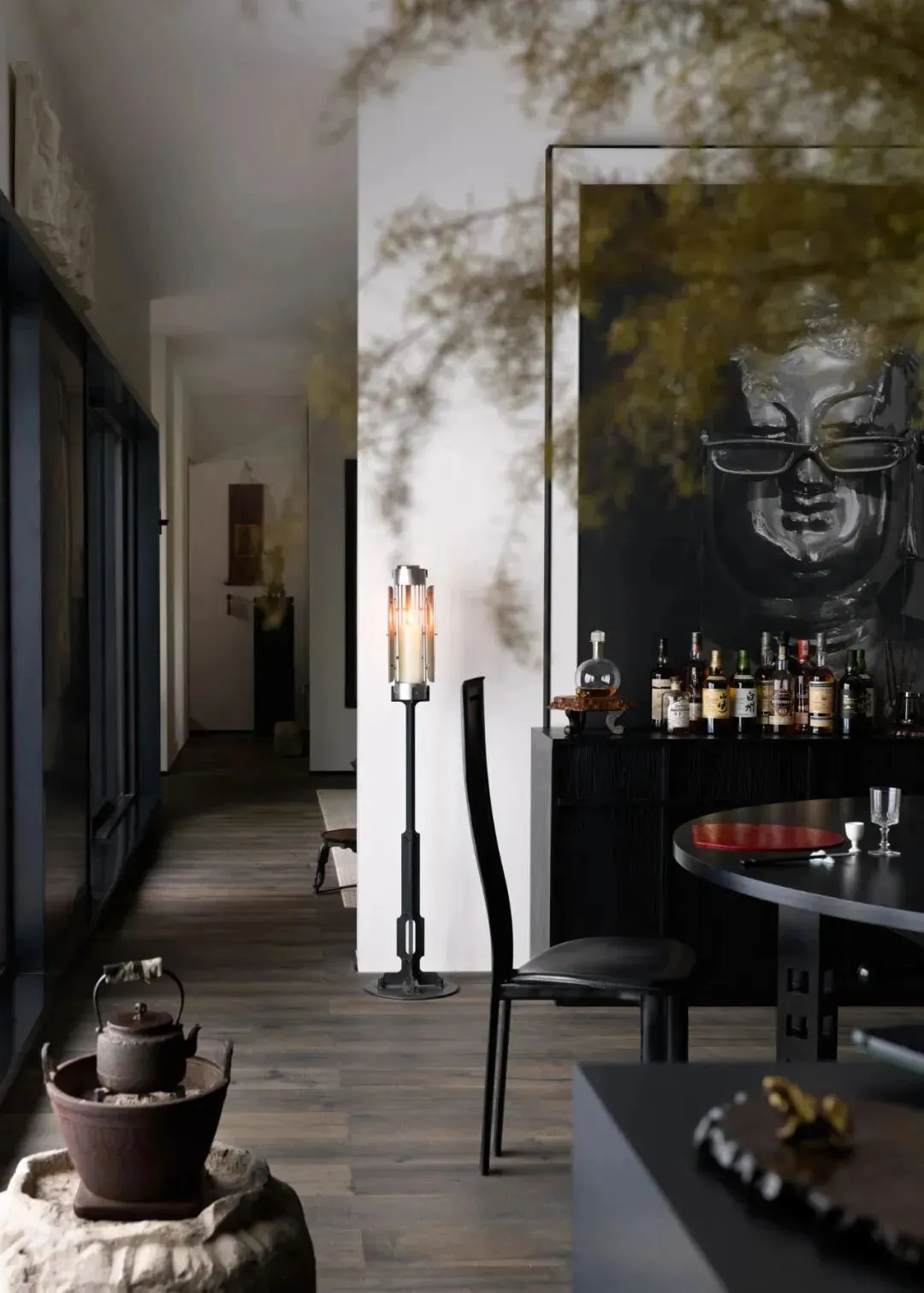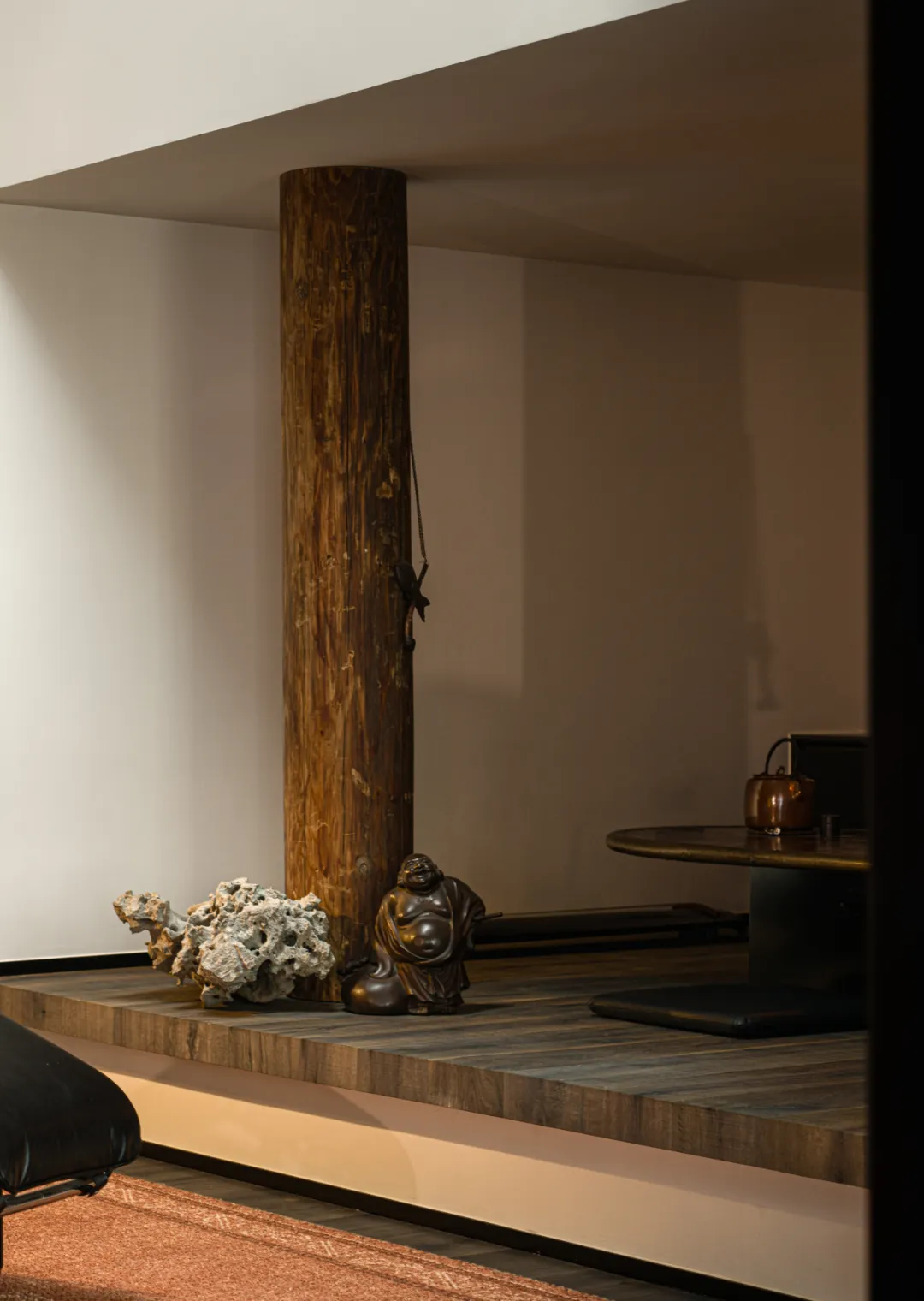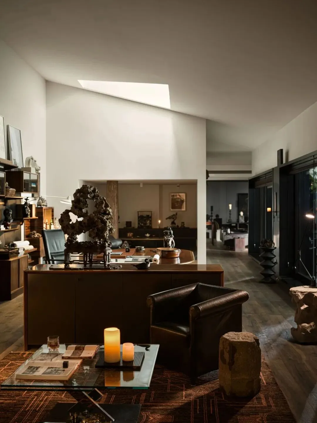 茶室则与冥想空间巧妙结合,形成了一个安静、沉思的环境。此外,厐喜通过“隐形移门”设计,灵活分隔空间,在保持通透感的同时,也能有效提升私密性。